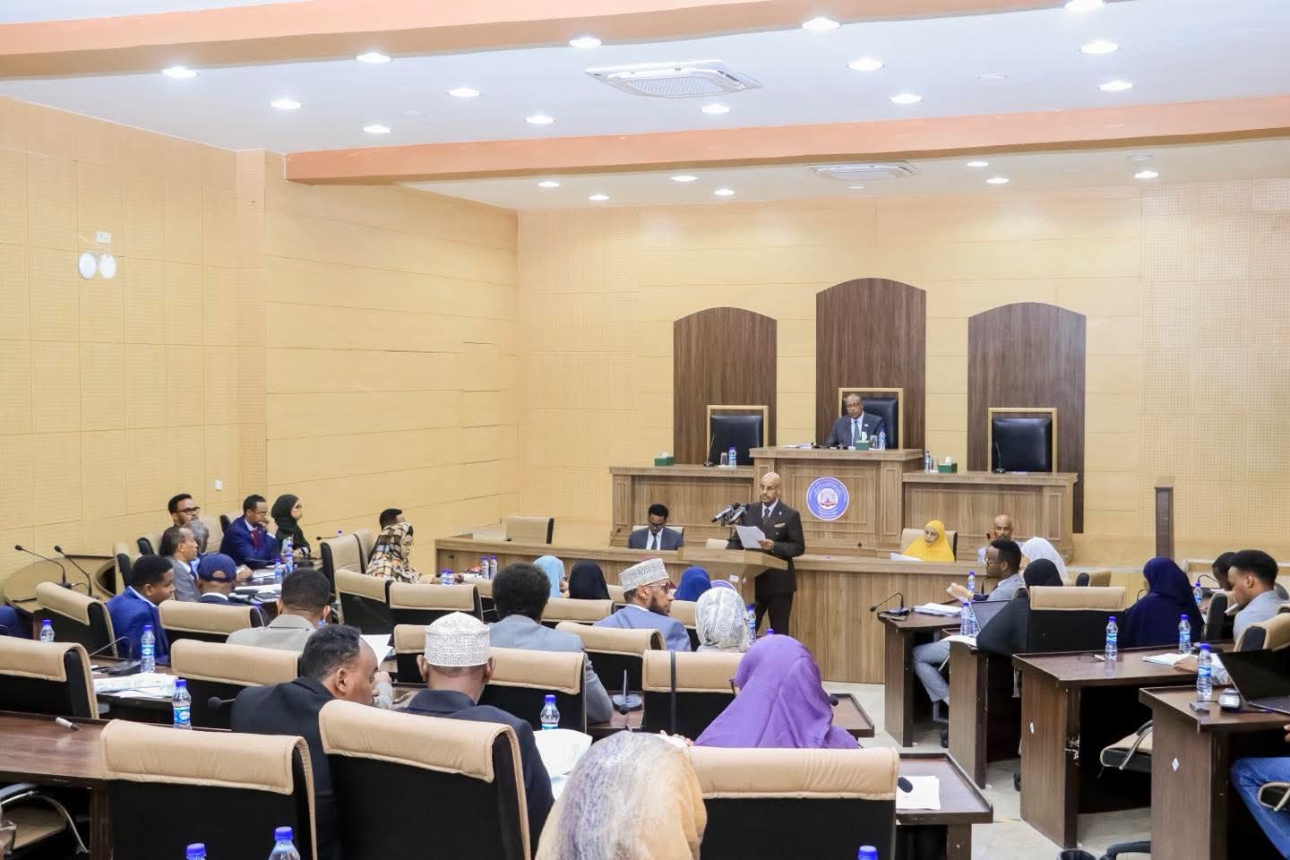 Fadhiga Golaha oo uu Shir-guddoominayay Guddoomiye Ku-Xigeenka Labaad ee Golaha Aqalka Sare, Senator Cabdullaahi Cali Xirsi (Timacadde), kaas oo si rasmi ah u furay kalfadhiga ayadoona uu kooramka ku xadir ahayeen 28 Xubnood, intaa kadib, Guddoomiyaha Guddiga Horumarinta Adeegga Bulshada ee Aqalka Sare, Sen. Prof. Dr. Osman Dufle, ayaa Golaha ka jeediyay Akhrinta Saddexaad ee hindise-sharciyeedka, si ay Senatoradu ugu codeeyaan ansixintiisa, ayadoona uu sharcigani waxa uu laf-dhabar u yahay horumarinta iyo tayeynta nidaamka caafimaadka Dalkeena.