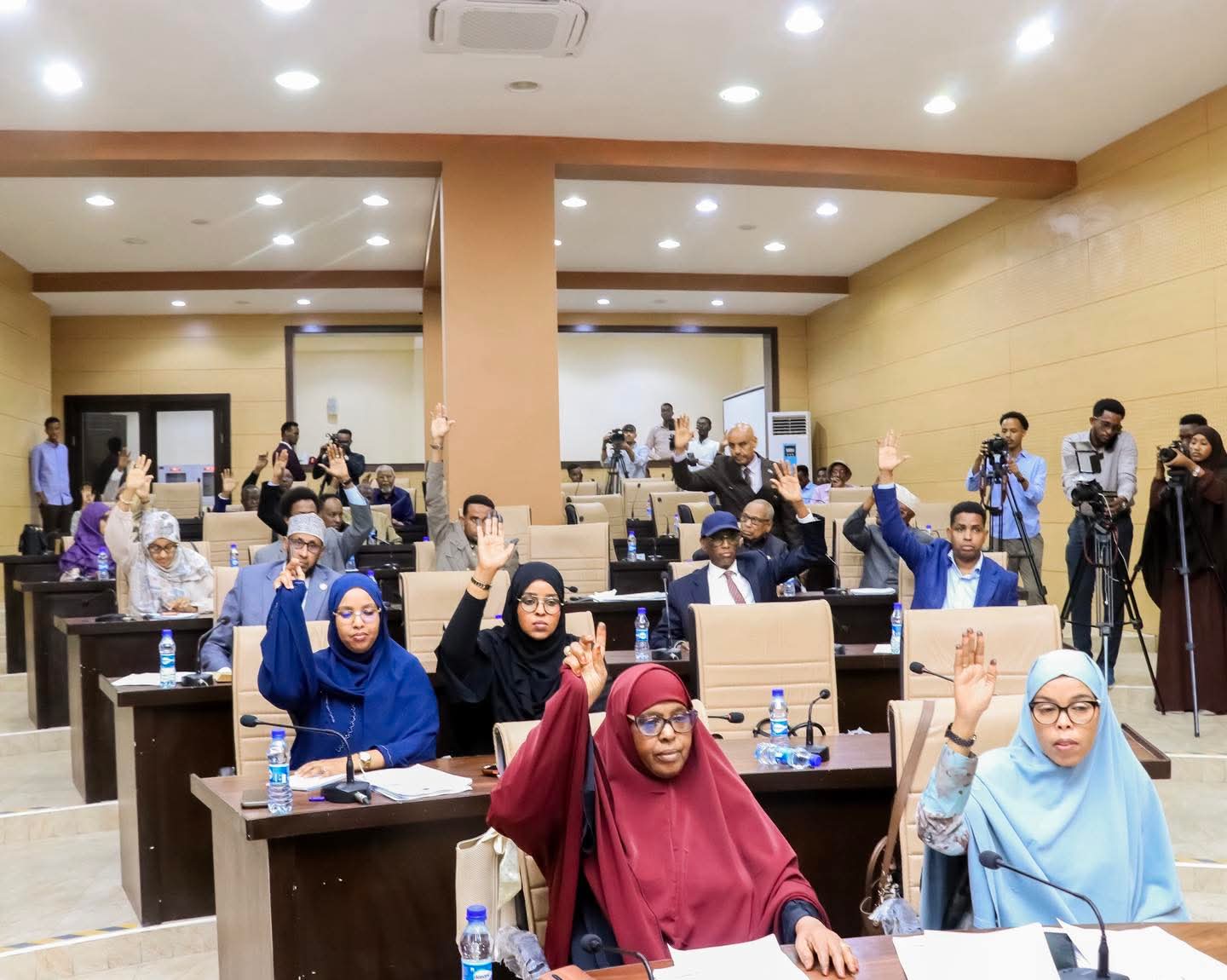 Ku-simaha Wasiirka ahna Wasiiru-dowlaha Wasaaradda Caafimaadka Jamhuuriyadda Federaalka Soomaaliya, Dr. Maryan Xuseen, oo ay weheliyaan khubaro ka socday Wasaaradda Caafimaadka iyo Hay’adda Daawada, ayaa goob-joog ka ahaa ansixinta Sharciga Daawada iyo Agabka Caafimaadka Soomaaliyeed oo maanta ka dhacday Golaha Aqalka Sare ee Baarlamaanka Soomaaliya.