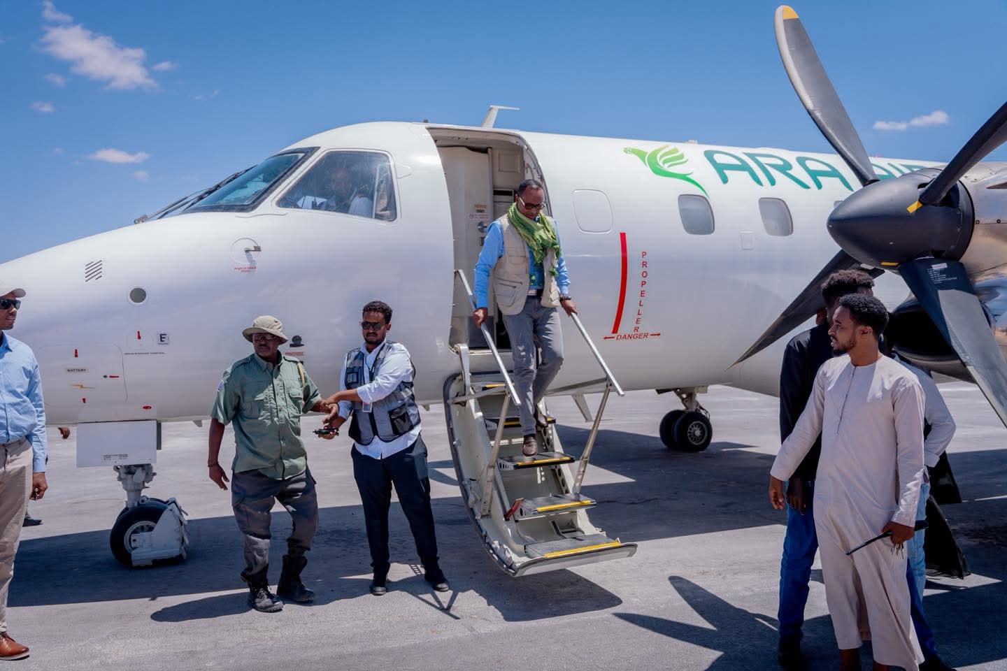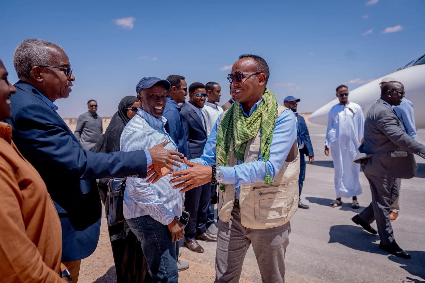 Guddoomiyaha Hayโadda Maareynta Musiibooyinka Qaranka SoDMA waxaa Dhuusamareeb ku soo dhaweeyay masโuuliyiin ka tirsan Galmudug, oo uu ka mid yahay Wasiirka Wasaaradda Gargaarka iyo Maareynta Musiibooyinka Galmudug, Mudane Cabdiraxmaan Maxamed Diiriye (Makaawi), iyo Guddiga Abaaraha Galmudug.