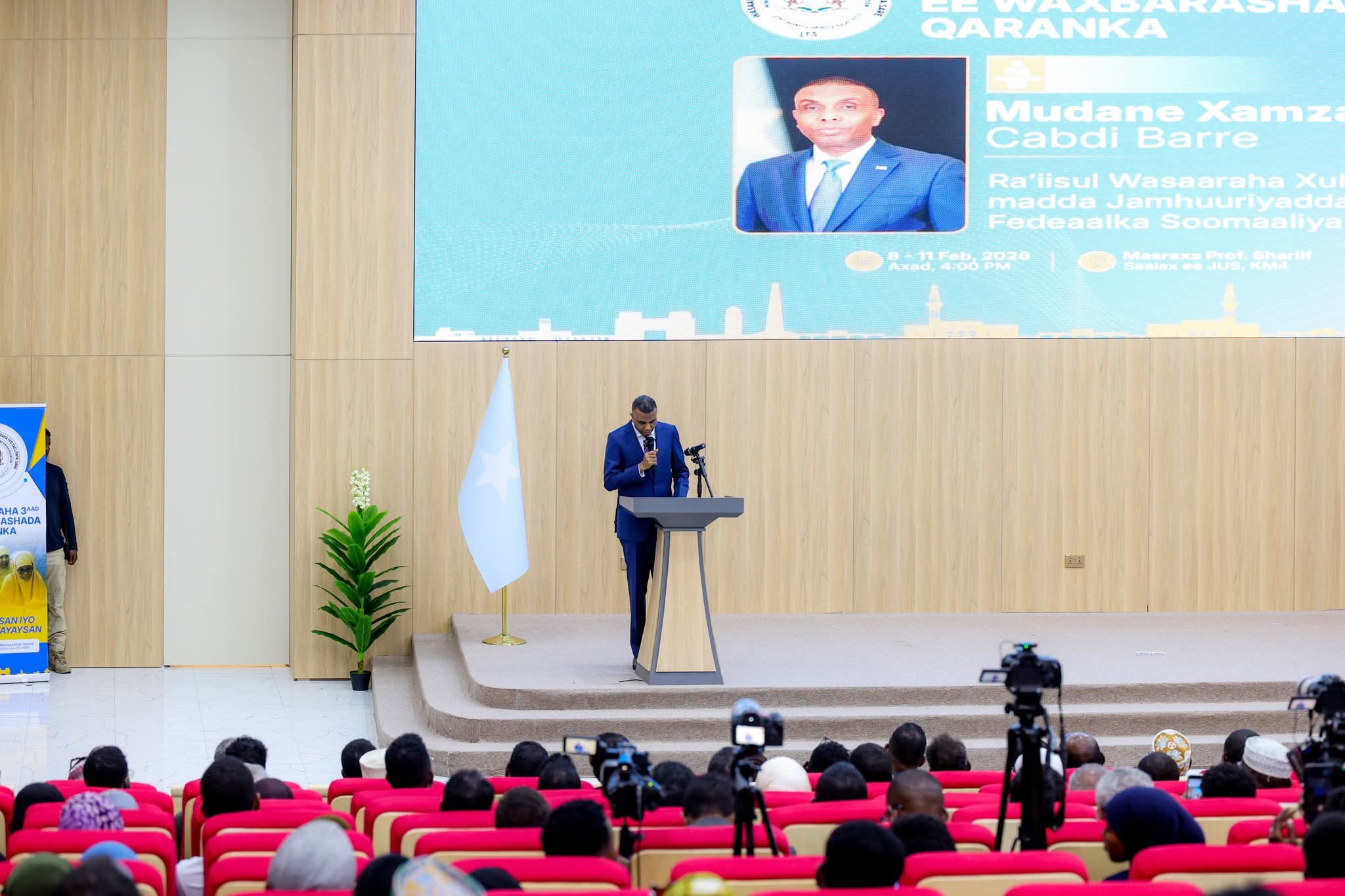 Raโ€™iisul Wasaaraha Xukuumadda Jamhuuriyadda Federaalka Soomaaliya, Mudane Xamsa Cabdi Barre, ayaa caawa daahfuray Shirweynaha 3aad ee Waxbarashada Qaranka, oo sannadkan diiradda lagu saarayo dib-u-habaynta iyo tayeynta nidaamka waxbarashada dalka, horumarinta manhajka, kobcinta xirfadaha macallimiinta iyo ballaarinta fursadaha waxbarasho ee dalka.
