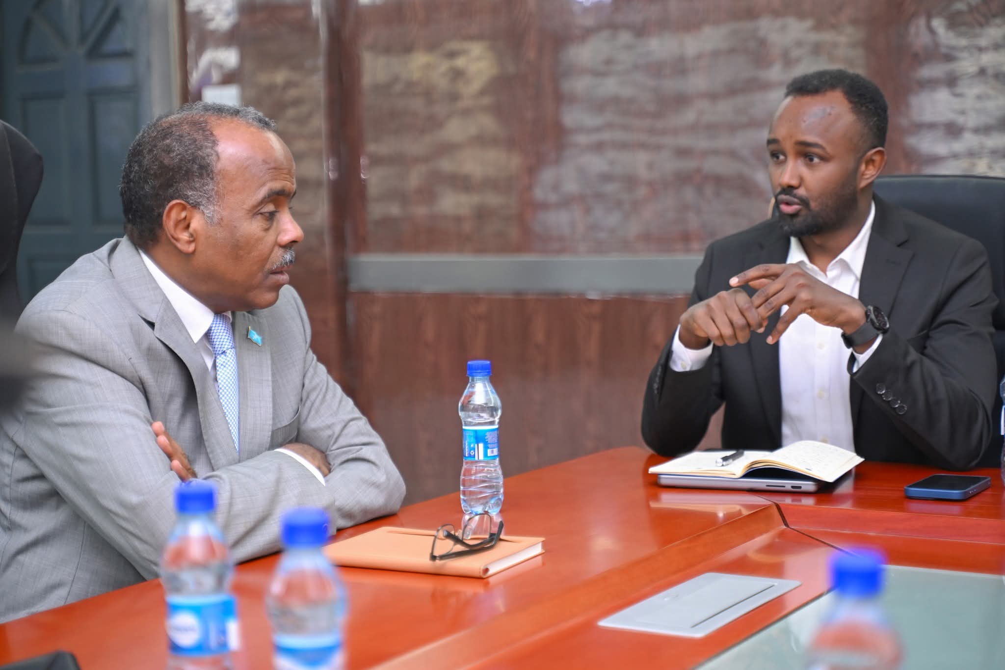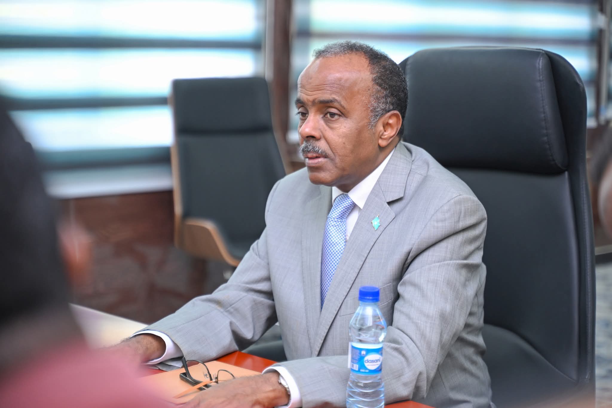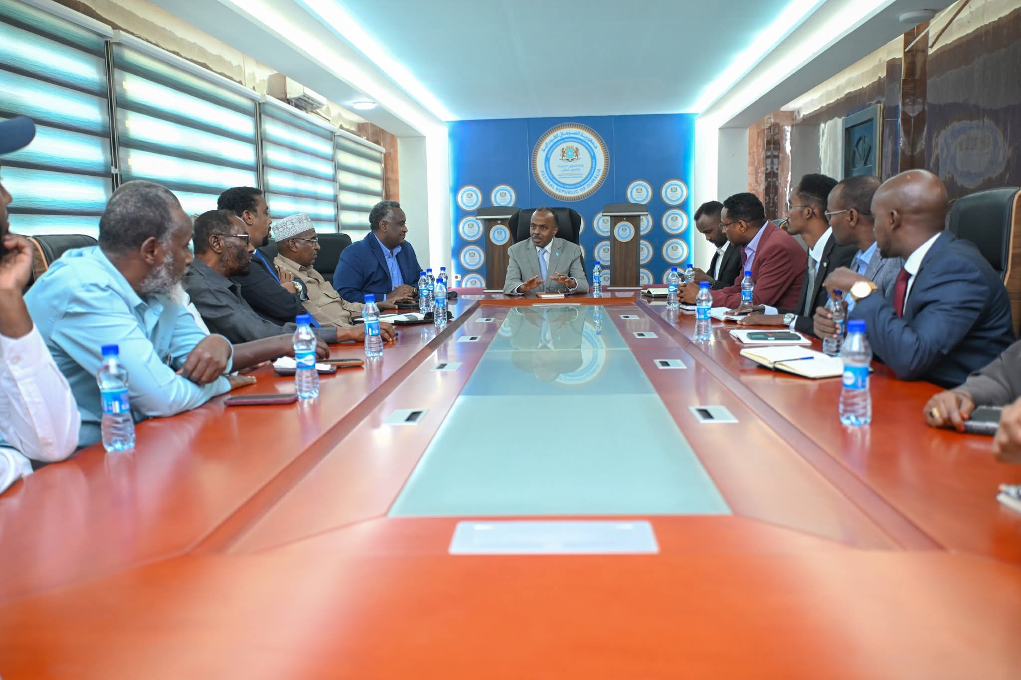Wasiiru-dowlaha Arrimaha Dibadda ee Jamhuuriyadda Federaalka Soomaaliya, Mudane Cali Cumar, ayaa maanta kulan muhiim ah la yeeshay hoggaamiyeyaasha ganacsiga Soomaaliyeed, oo ay ka mid yihiin ururrada bangiyada, Rugta Ganacsiga Soomaaliyeed, Ururka Isgaarsiinta iyo haweenka ku jira ganacsiga.
