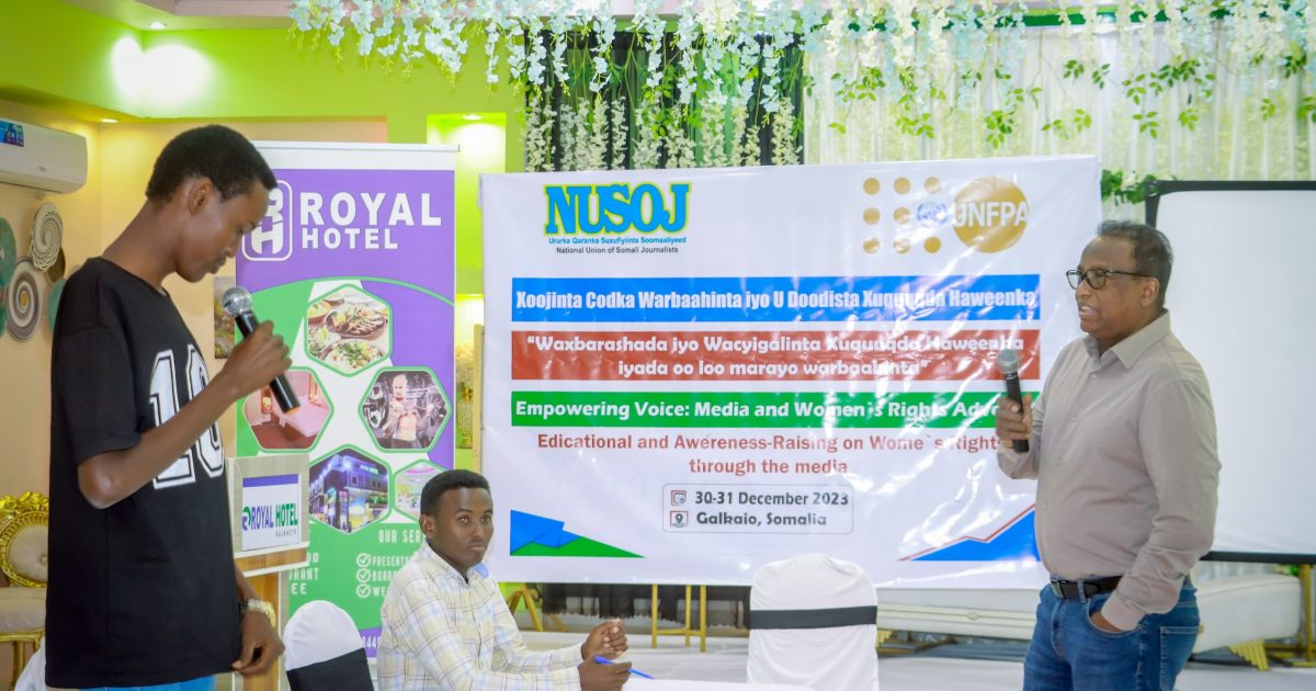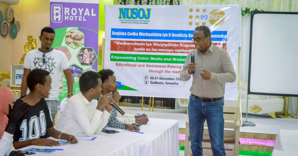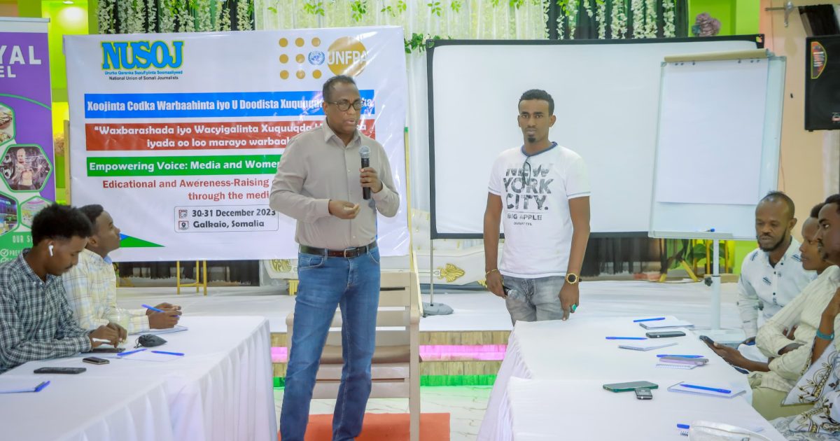 Ururka Qaranka Suxufiyiinta Soomaliyeeda ee NUSOJ oo gacan ka helaya Hay,adda UNFPA ayaa soo aqaasintay tababarka, waxaana bixinaya casharada la xariira xoojinta ilaalinta xuquuqda haweenka aqoonyahano ku xeeldheer arimaha xuquuqul Insaanka.