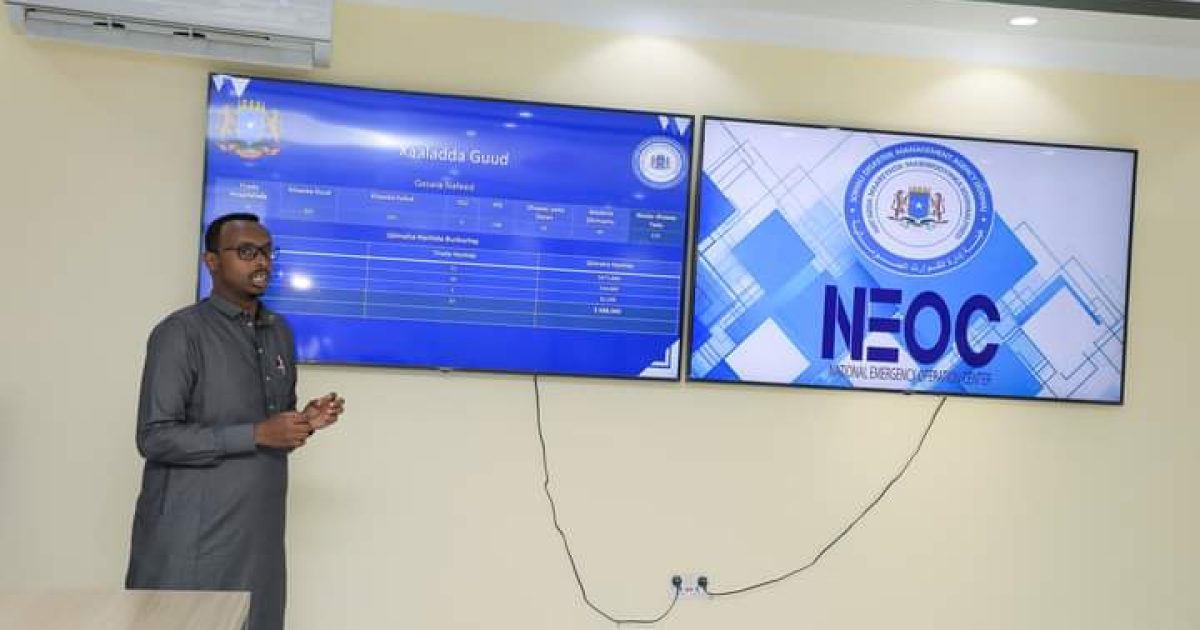 Madaxweynaha dowlad goboleedka Hirshabeelle Cali Cabdullaahi Xuseen (Cali Guudlaawe), iyo Guddiga Gurmadka Qaran oo ay ugu horeyaan Wasiirada Wasaaraddaha, Cafimaadka, Waxbarashada iyo Guddoomiyaha Hey’adda SoDMA ayaa Xarunta NEOC ku qabtay kulan diiradda lagu saaray sidii jawaab soo kabasho looga bixin lahaa khasaaraha ka dhashay dabkii ka kacay suuqa Hanti-wadaag ee magaalada Jowhar.