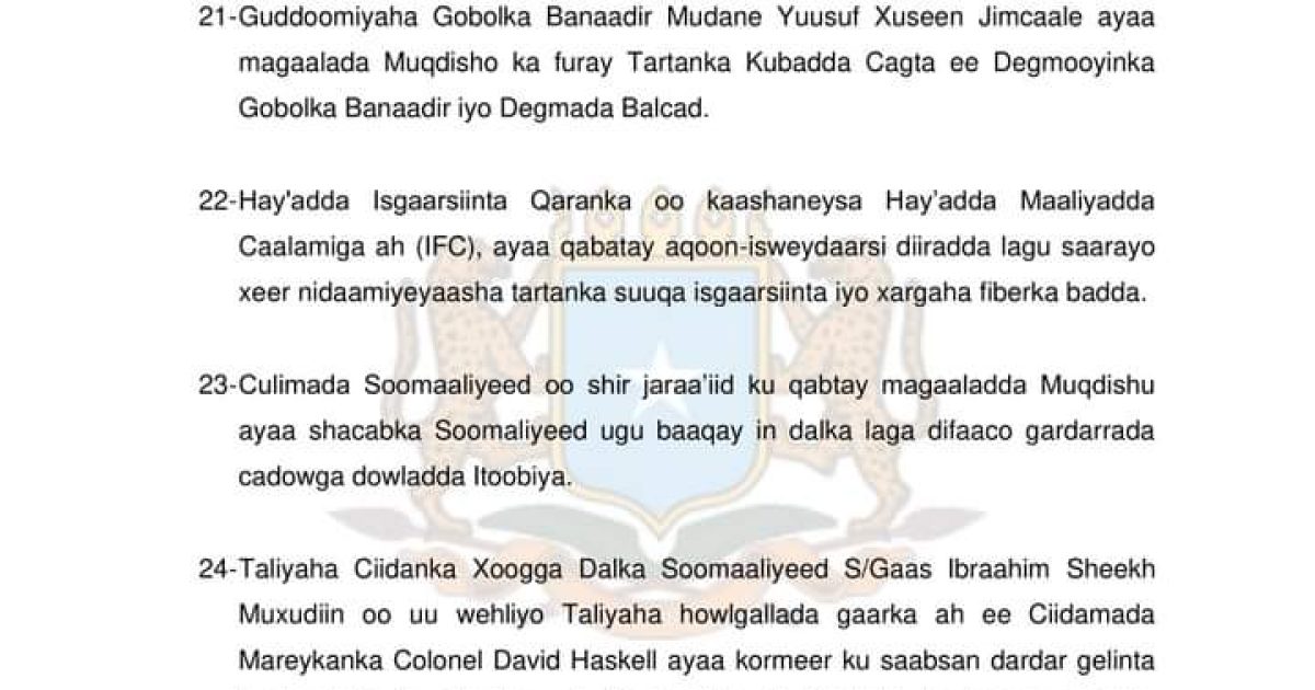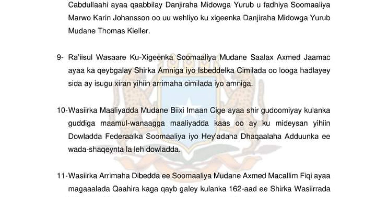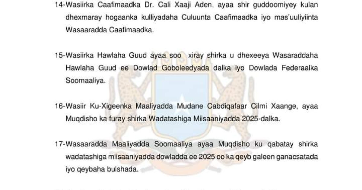 15-Wasiirka Hawlaha Guud ayaa soo xiray shirka u dhexeeya Wasaraddaha Hawlaha Guud ee Dowlad Goboleedyada dalka iyo Dowlada Federaalka Soomaaliya.