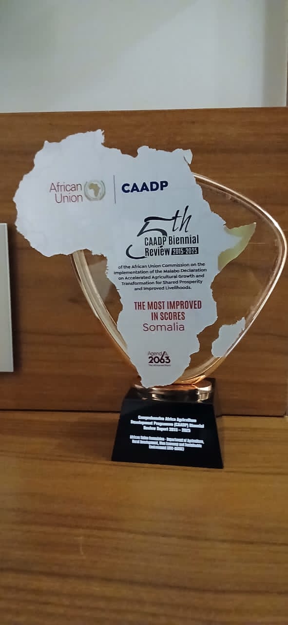 Sanadihii danbe Soomaaliya waxay muujisay horumar muuqda kuna aadan hirgelinta ajandaha CAADP, waxaana si rasmi ah loogu gudoonsiiyay CAADP Best Performance Award ee Afrika, taasoo ka tarjumaysa dadaallada dalka uu gaaray kaasoo lagu horumarinayo beeraha, kor u qaadista wax soosaarka iyo xoojinta sugnaanta cuntada.