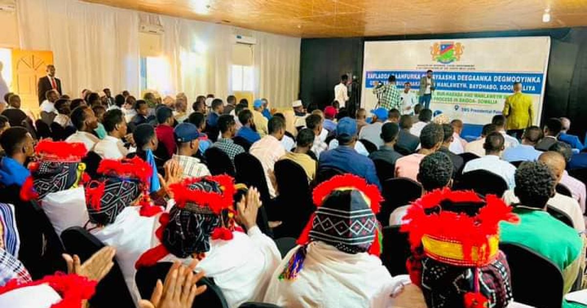 Ku-simaha Gudoomiyaha Golaha Wakiilada Dowladda Koonfur Galbeed Mudane Maxamed Nuur Maxamed Macalin oo si rasmi ah udaafurey Dhismaha Golayaasha Deegaanka Degmooyinka Ceel-berde, Buur-hakaba, iyo Wanlaweyn, ayaa mas’uuliyiinta ka soo jeeda Degmooyinkaasi kula dar daarmey ” waa inaad ka qeybqadataan oo aad mujisaan kaalintii idinkaga aadan,ee Golayaasha”