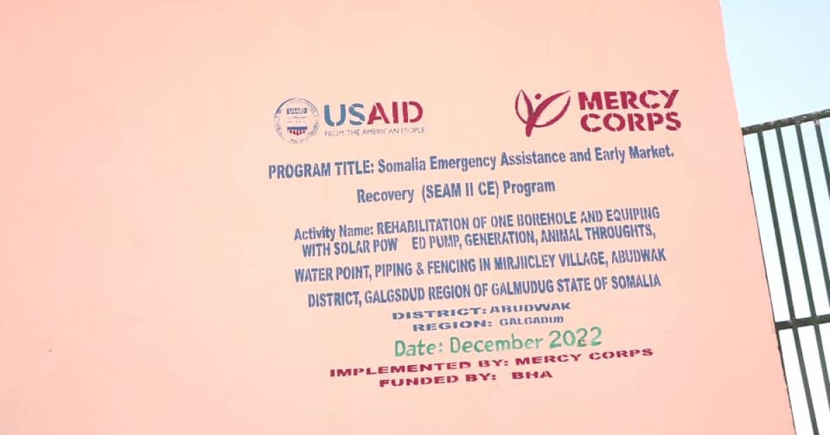 Hay’adda Mercy Corps oo gacan ka heleysa USAID mashruuca dhismaha iyo qalbeynta ceelkana ay fuliyeen kambaniga Shiine Trading Company,ayaa dhistay ceelala casri ah oo looga maarmi doono kuwii hore ee wadaanta lagu daraayay,Waana ceelal ay wada isticmaalayaan dhammaan dadka deegaan oo uu garaayo.