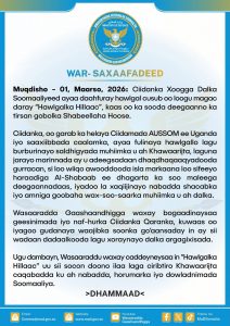 Ugu dambayn, Wasaaraddu waxay caddeyneysaa in “Hawlgalka Hillaac” uu sii socon doono ilaa laga ciribtiro Khawaarijta caqabadda ku ah nabadda, horumarka iyo dowladnimada Soomaaliya.