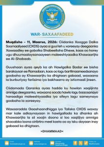 Wasaaradda Gaashaandhigga iyo Taliska CXDS ayaa mar kale adkeeyay in hawlgallada ka dhanka ah Khawaarijta la sii xoojin doono, si loo xaqiijiyo amniga shacabka loona ciribtiro meel kasta oo ay isku dayaan inay gabaad ka dhigtaan.