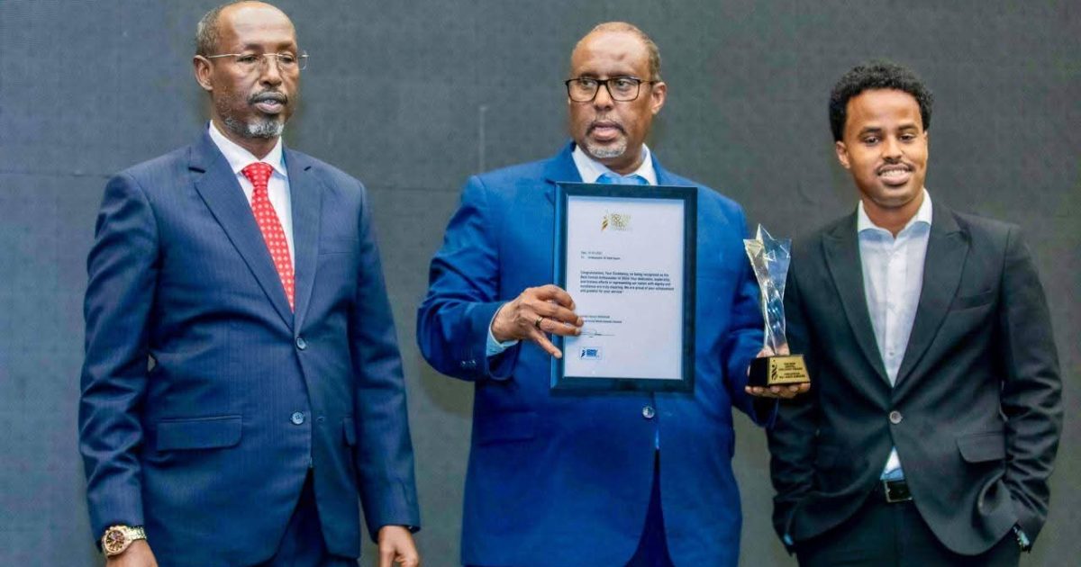Danjire Awaare ayaa uga mahadceliyay abaalmarinta, isagoo ballan qaaday inuu sii laba jibbaarayo dadaallada matalaadda dalka iyo kor u qaadidda sumcadda Soomaaliya caalamka.