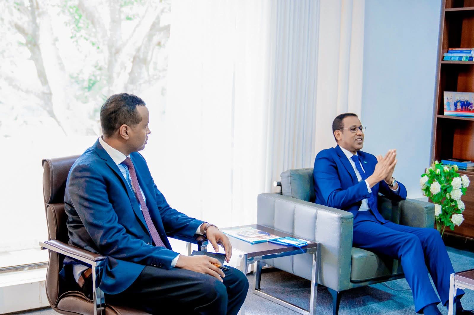 Guddoomiyaha Hay’adda Maareynta Masiibooyinka Qaranka (SoDMA), Mudane Maxamuud Macalin Cabdulle, oo ay wehliyaan Agaasimaha Guud ee Wasaaradda Maaliyadda, Mudane Suleymaan,...
