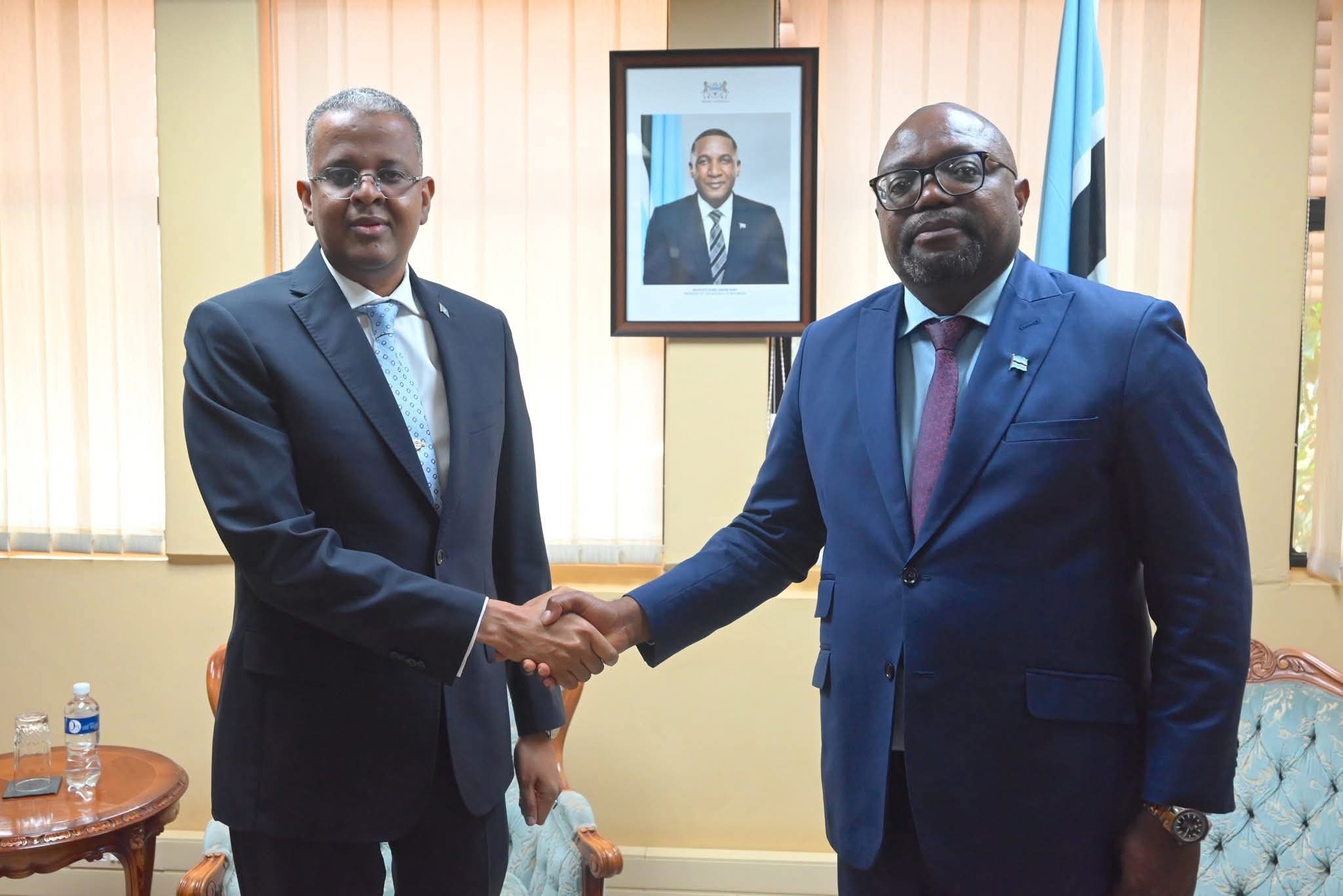 Danjiraha Jamuuriyadda Federaalka Soomaaliya u fadhiya Dalka Koonfur Afrika sidoo kalena ah Safiirka Dalalka Southern Afrika Danjire Maxamed Sheekh Isxaaq ayaa maanta warqadaha aqoonsiga Safiirnimo waxaa ka guddoomay Wasiirka Arrimaha Dibada ee Dalka Botswana Dr. Phenyo Butale,.