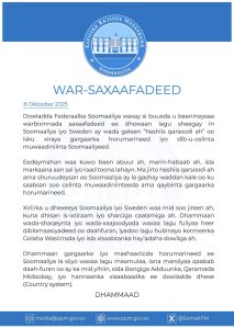 DFS oo beenisay wararka ku saabsan heshiis qarsoodi ah oo ay la gashay Dowladda Sweden