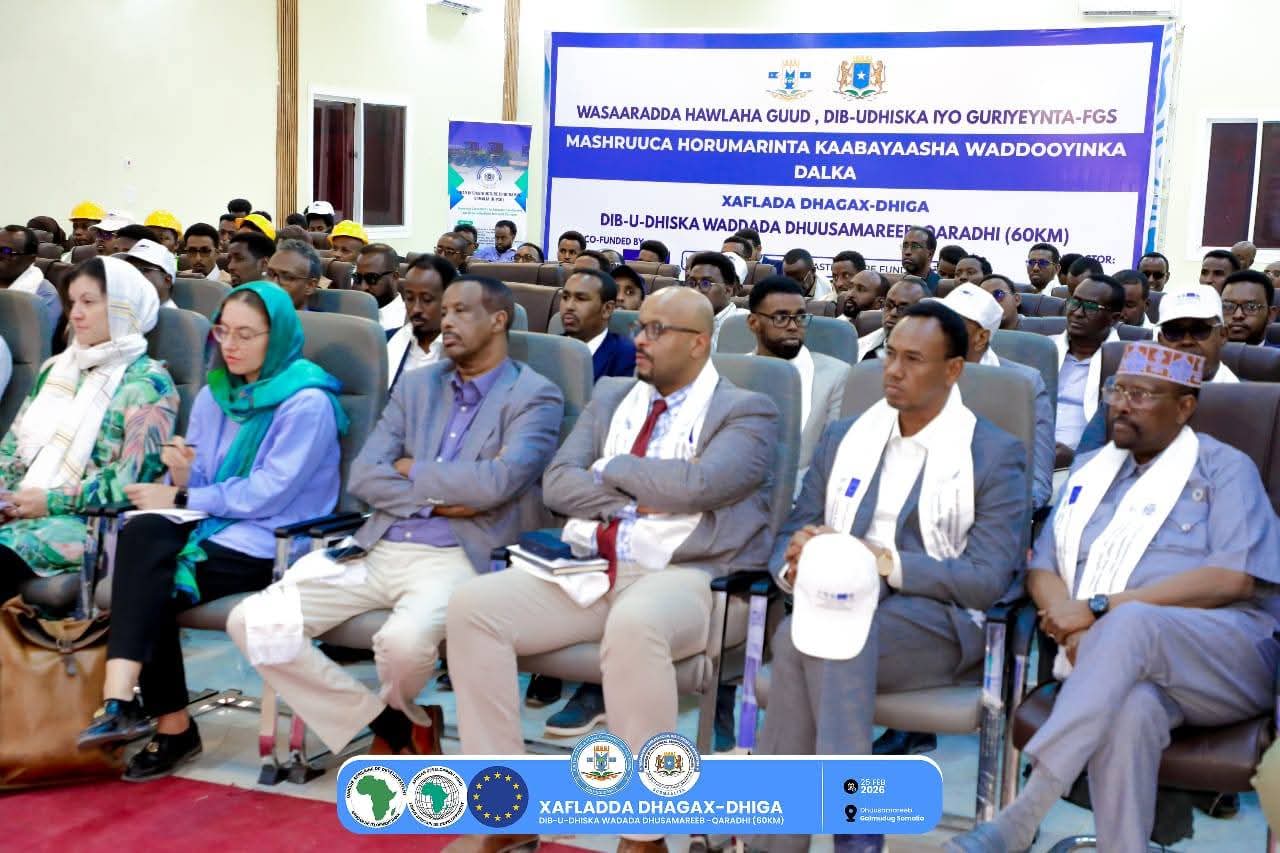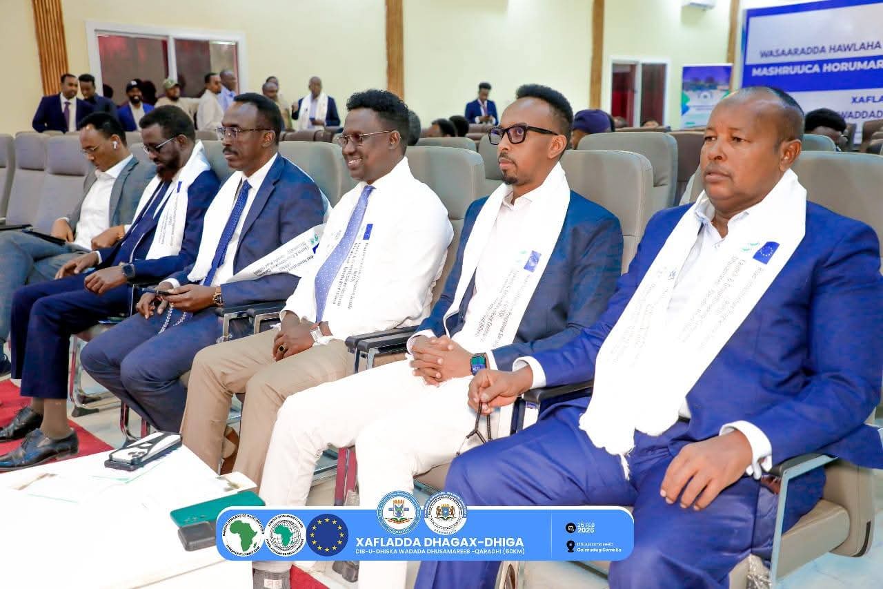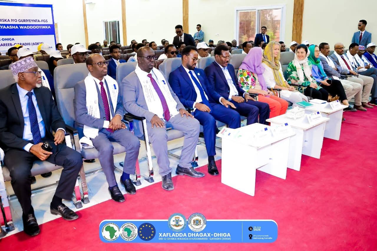 Xafladdan oo ay ka soo qeybgaleen Madaxwaynaha Dowladda Galmudug Axmed Cabdi Kaariye – Qoorqooor, Wasiirka Wasaaradda Hawlaha Guud, Dib u dhiska & Guriyeynta XFS mudane Ayuub Ismaaciil Yuusuff, Safiirka Midowga Yurub ee Soomaaliya, Francesca Di Mauro, Madax Mashaariicda Iyo Hawlwadeenada Mashruuca RIPS , mas’uuliyiin ka tirsan ,Galmudug , Xildhibaanno heer Federal, heer Gobol iyo wakiillo ka socday beesha caalamka, ayaa lagu daahfuray bilowga hirgelinta mashruuc Dib-u-habeyn iyo dib-u-dhis lagu sameynayo waddada Dhuusamareeb – Qaradhi, dhererkeeduna yahay 60KM.