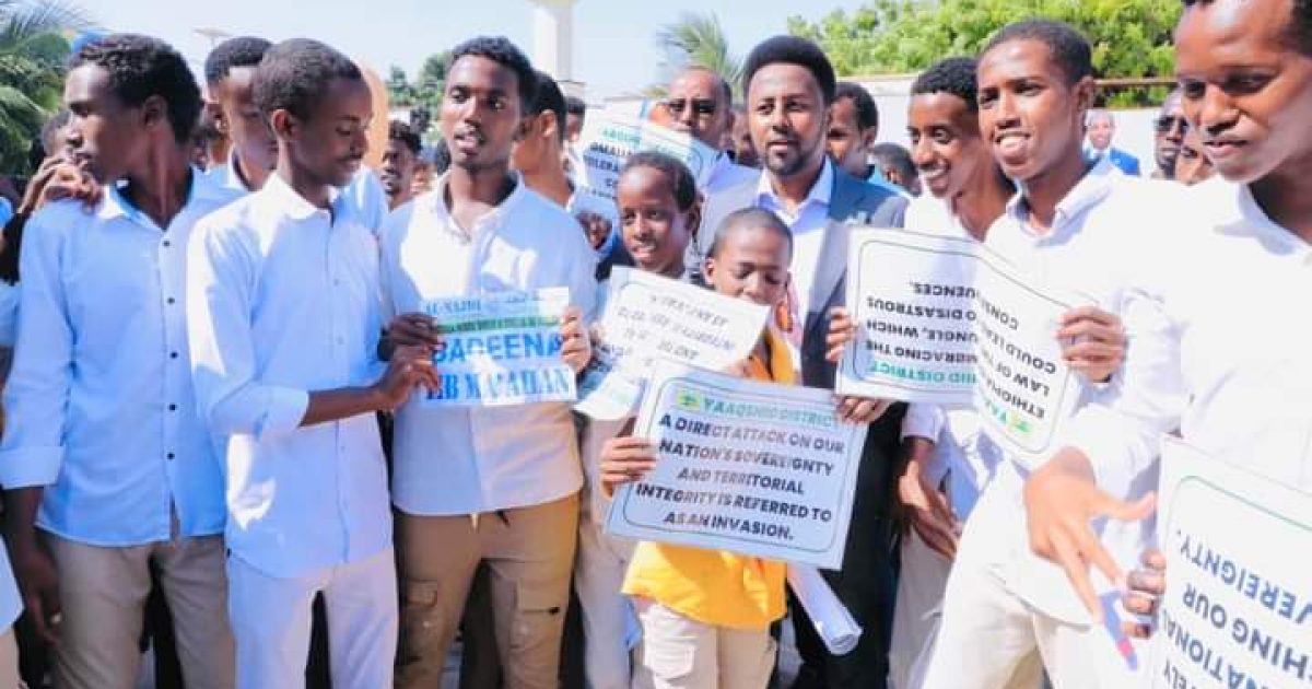 Maamulka Degmada Yaaqshiid ayaa maanta dibad bax ay uga soo horjedaan damaca Dowladda Ethiopia iyo Heahiis beenadka ay la gashay Muusa Biixi, ku qabatay Xarunta Degmada Yaaqshiid ee Gobolka Banaadir.