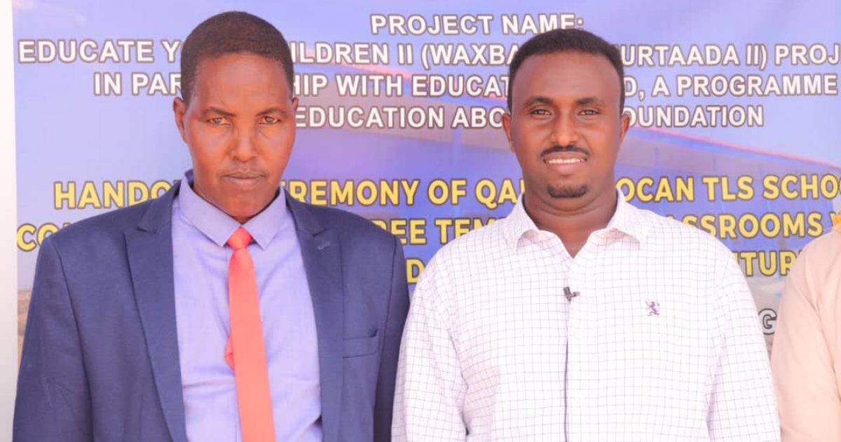 Hanad Cabdi Cali Guddoonka Waxbarashada magaalada Ceelguula ee Wasaaradda Waxbarashada Galmudug iyo Eng Maxamed wadajir oo ka socday mashruuca waxbar Carruurta ayaa kula dardaarmay bulshada Deegaanku inay ka faa”iidaystaan Iskuulkaan,.