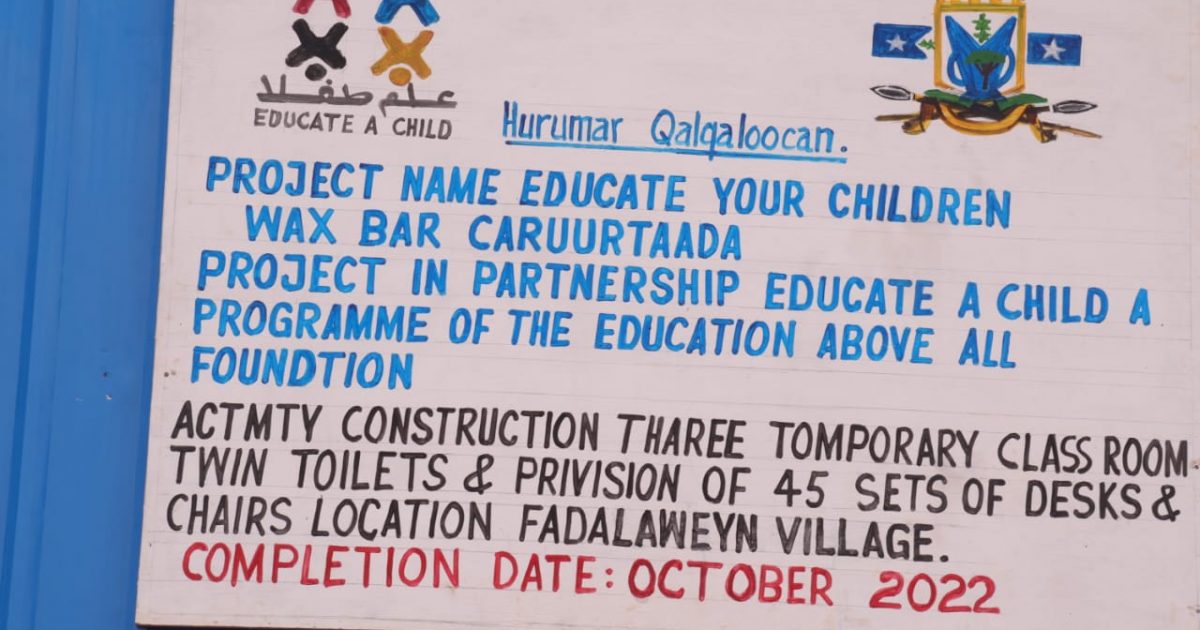Masuuliyiinta Wasaaradda Waxbarashada Galmudug ayaa sheegsy in Dugsi lagu dhisay Mashruuca waxbar Carruurta oo ay Wasaaraddu garwadeen ka tahay