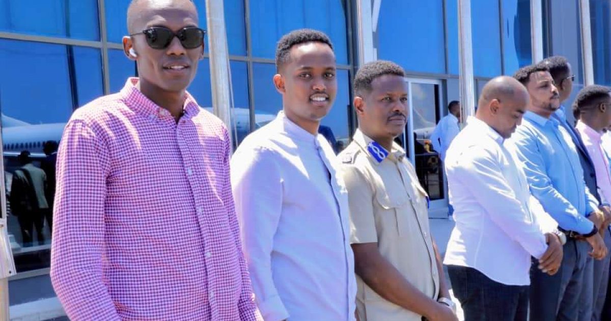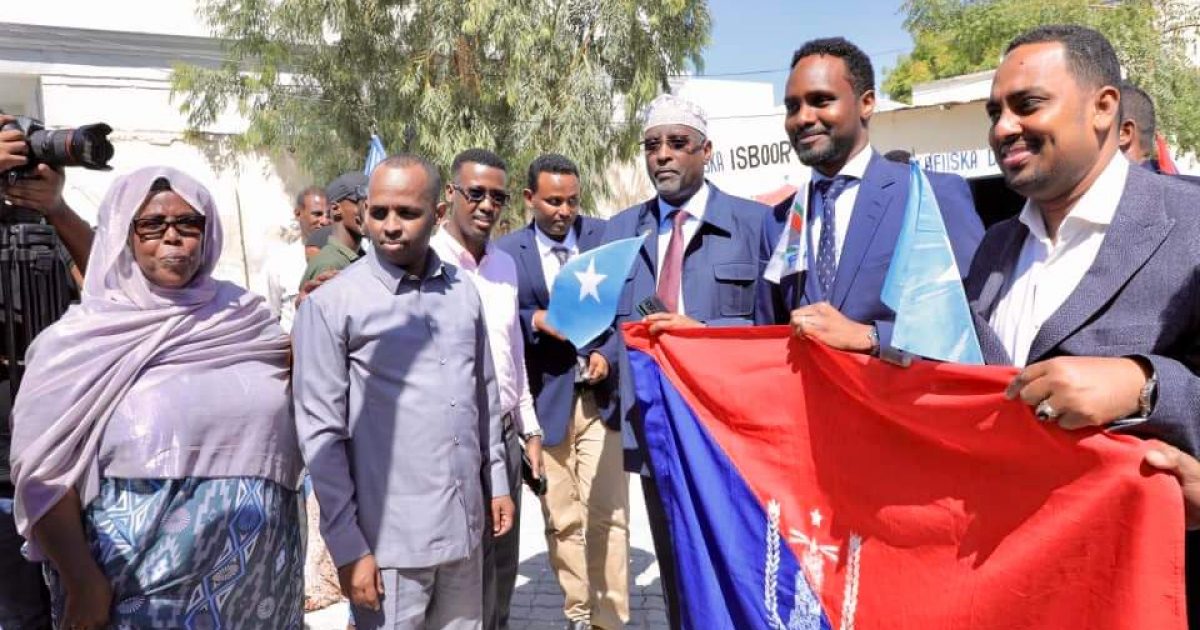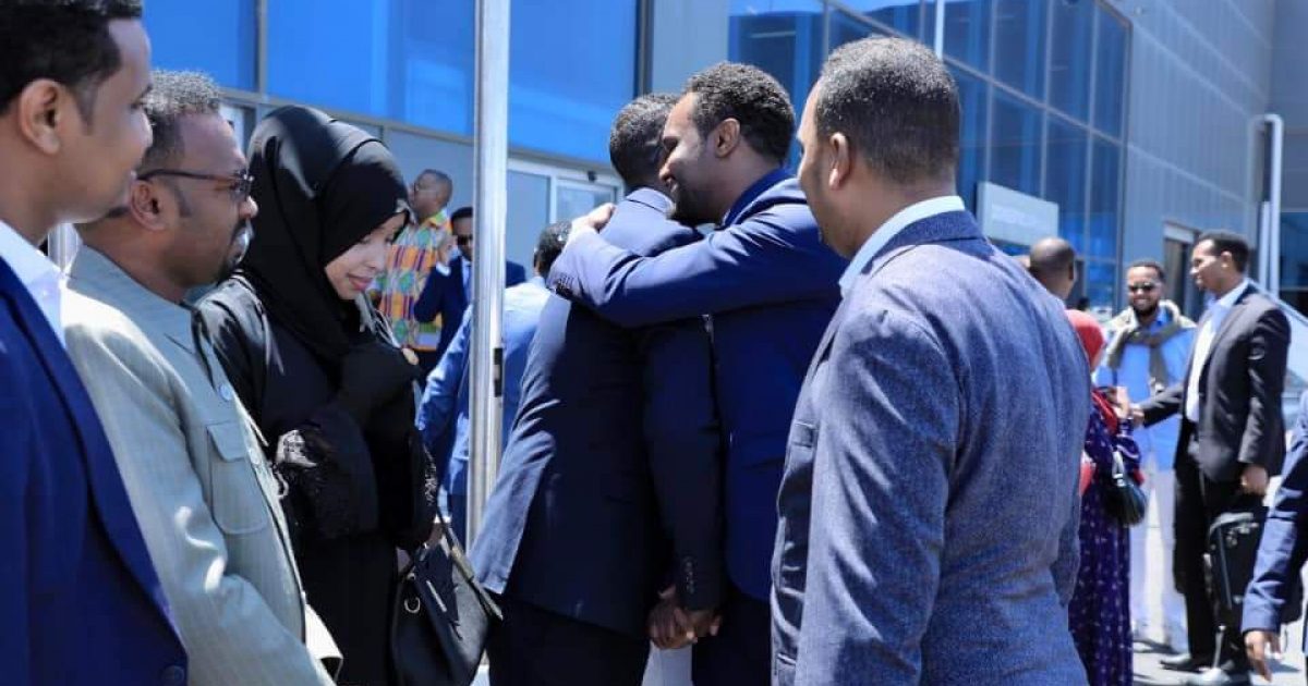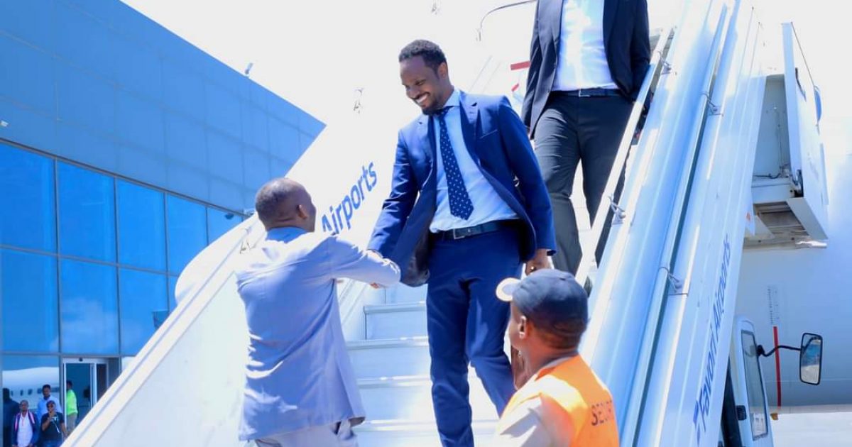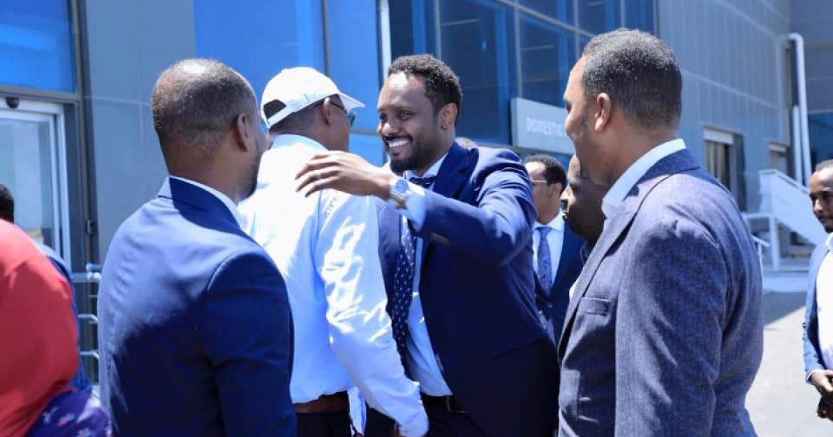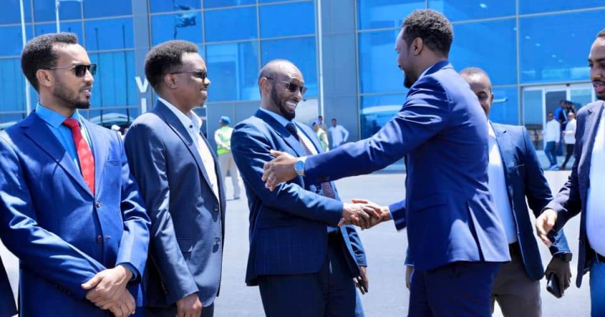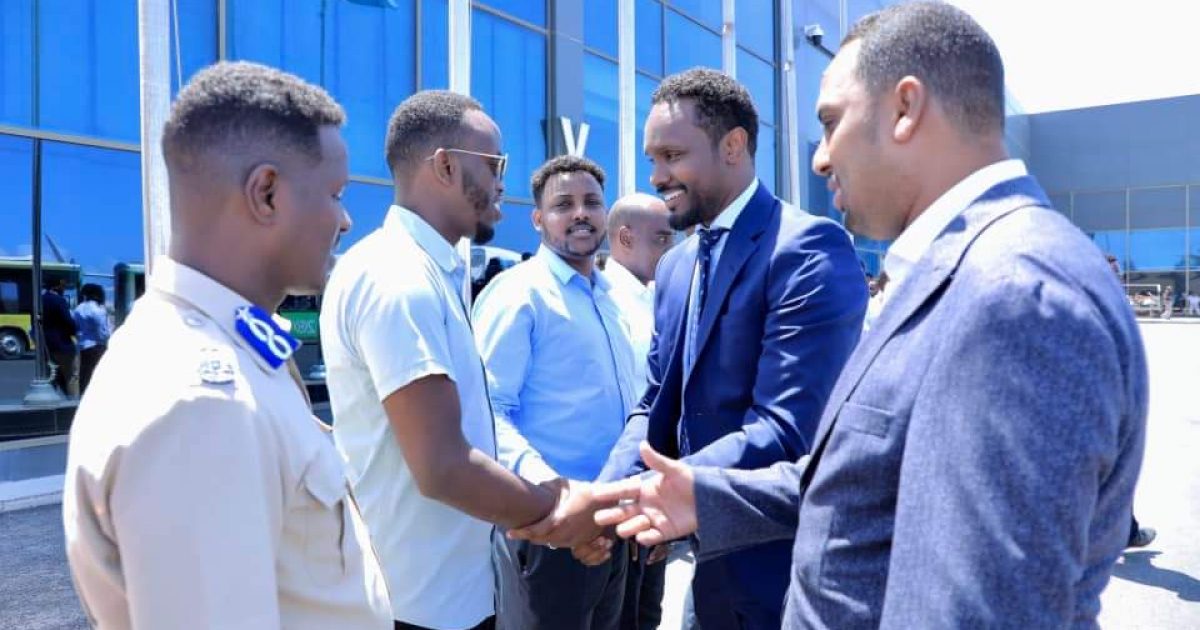 Guddoomiye Kuxigeenka Arrimaha Bulshada iyo Wacyigelinta Maamulka Gobolka Banaadir Mudane Cabdicasiis Cismaan Maxamed ayaa garoonka diyaaraha Aadan Cadde ee Magaalada Muqdisho kusoo dhaweeyay Duqa Magaaladda Bolnas ee dalka Sweden Md. Cabdullahi Aden.