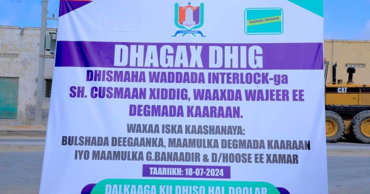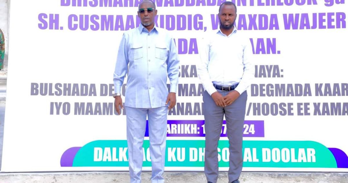 Guddoomiyaha Gobolka Banaadir ahna Duqa Magaalada Muqdisho Mudane Yuusuf Xuseen Jimcaale (Madaale), ayaa dhagax dhigay dhismaha waddo interlock ah oo laga hirgelinaayo Waaxda Wajeer ee Degmada Kaaraan, taasi oo loo yaqaan waddada Sheekh Cusmaan Xiddig.