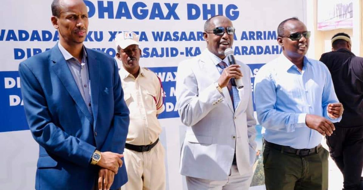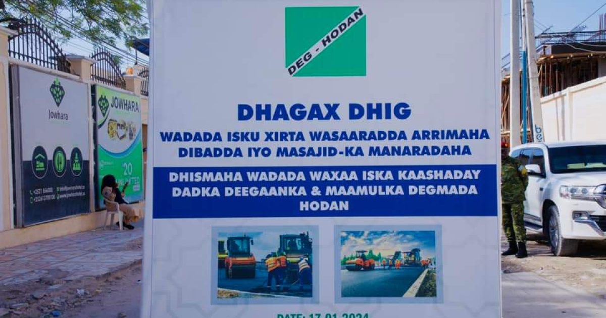Guddoomiyaha Gobolka Banaadir Ahna Duqa Magaalada Muqdisho Mudane Yuusuf Xuseen Jimcaale (Madaale), ayaa maanta dhagax dhigay dhismaha waddada isku xirta Wasaarada Arrimaha Dibada iyo Masjidka Minaaradaha ee Degmada Hodan oo ay dhismaheeda iska kaashan doonan dadka deegaanka iyo maamulka degmada.