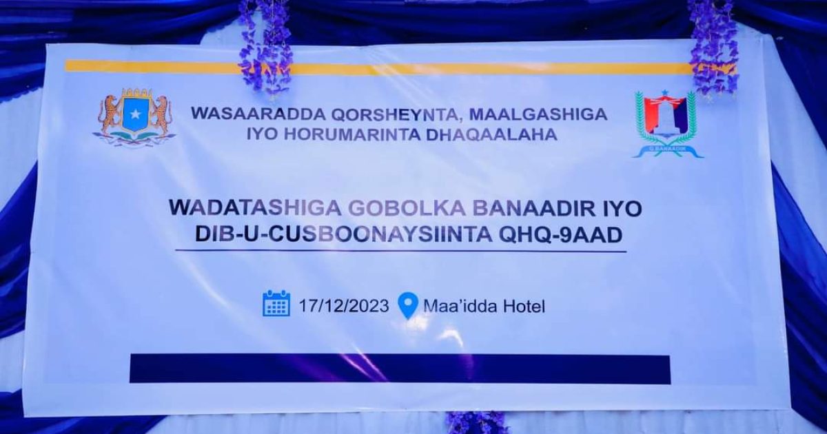 Guddoomiyaha Gobolka Banaadir Ahna Duqa Magaalada Muqdisho Mudane Yuusuf Xuseen Jimcaale (Madaale),ayaa daah furay Shirka Wadatashiga Dib-u-cusbooneysiinta Qorshaha Horumarinta Qaranka 9-aad ee sandka 2024 oo ay fulinteeda iska kaashan doonaan Maamulka Gobolka Banaadir iyo Wasaaradda Qorsheynta Qaranka.