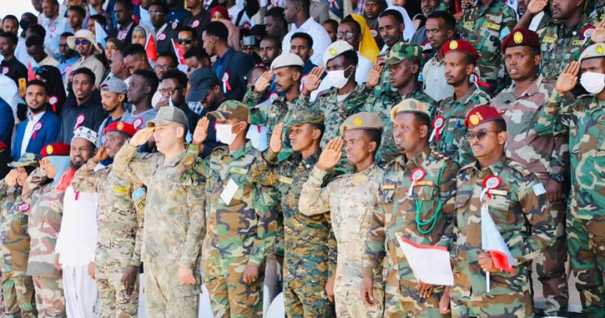 Saraakiisha Tababarka loo soo xiray, ayaa xarunta TURKISHSOM kusoo bandhigay gaardis ay ku muujinayeen Awoodooda iyo Xirfadooda ku aadan sida ay uga go’an tahay in ay dhiigooda iyo naftooda u huraan difaaca Qaranka iyo badbaadinta Ummadda Soomaaliyeed.