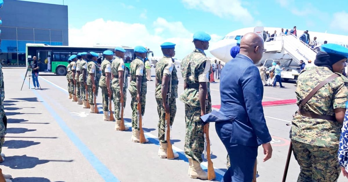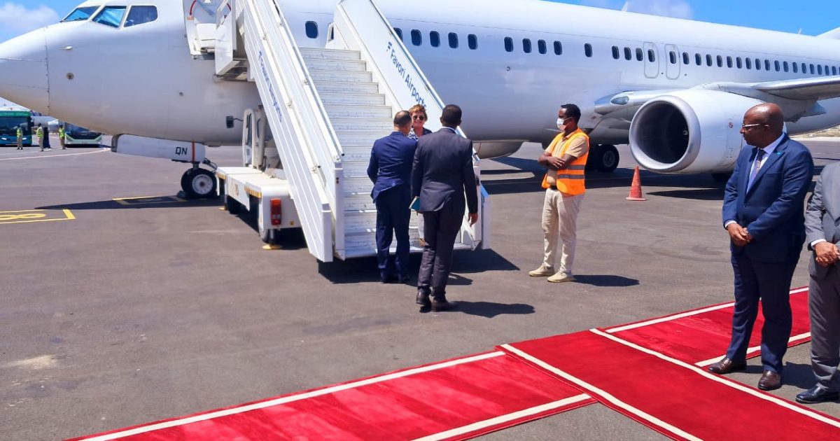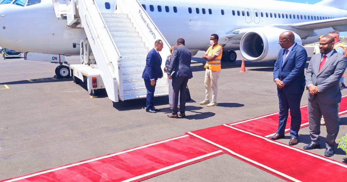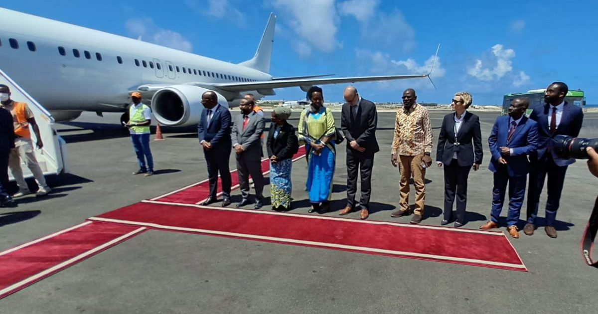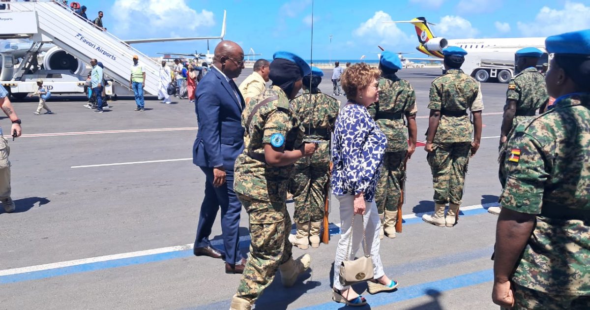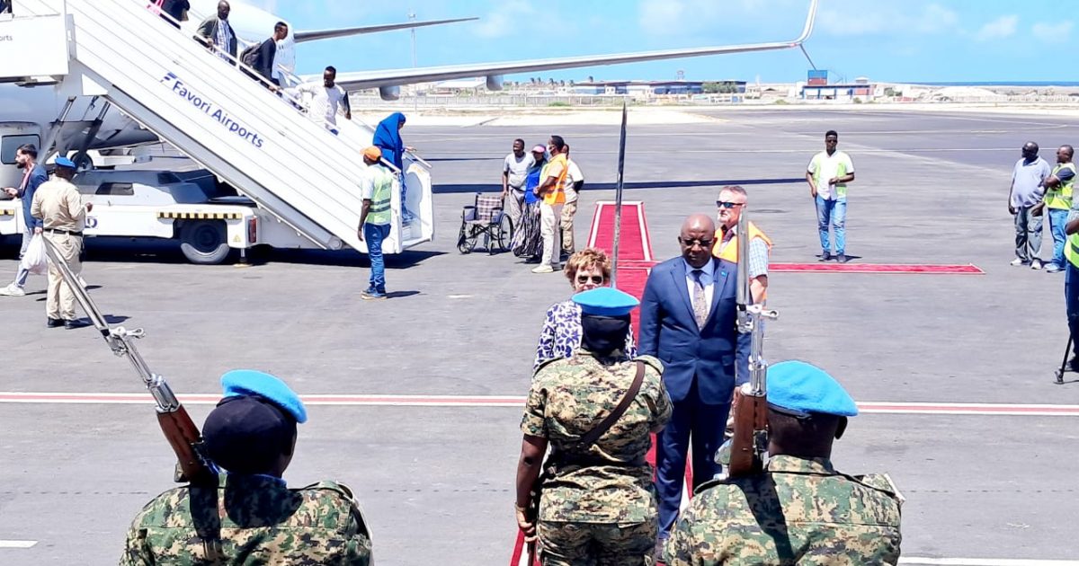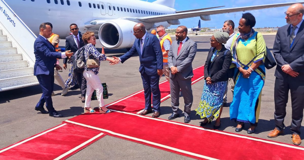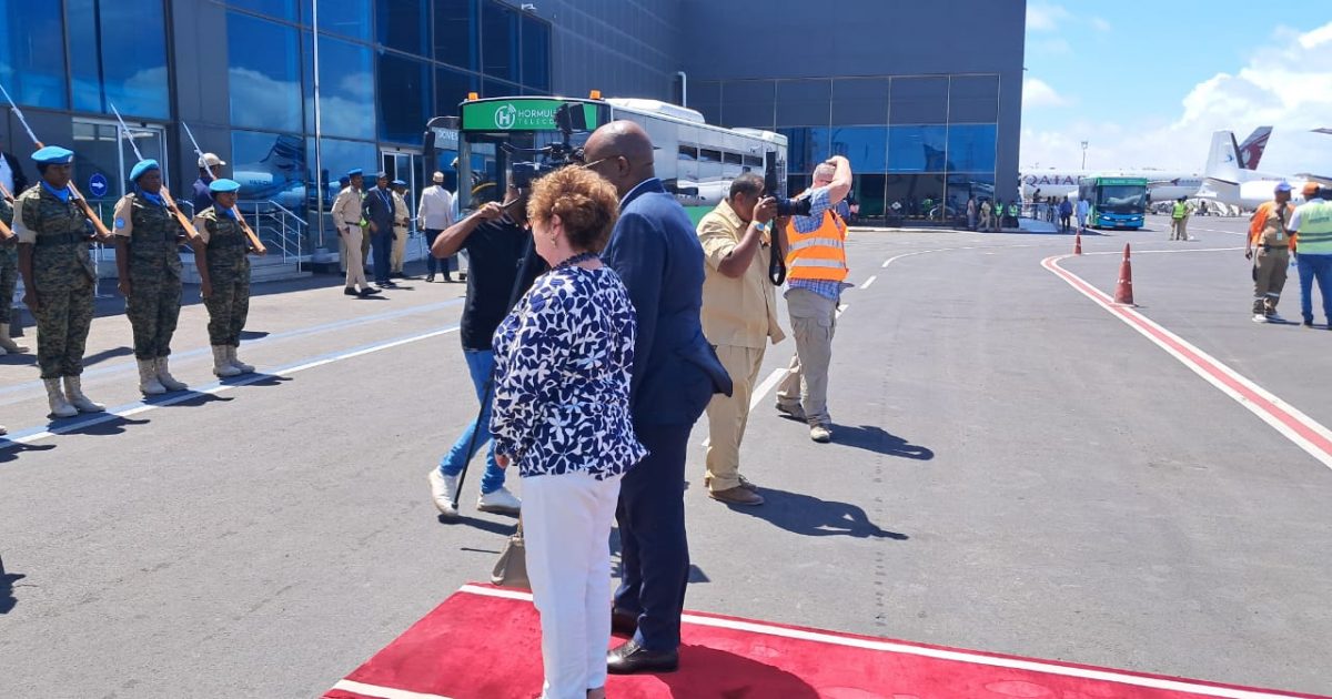 Munaasabadda soo dhoweynta Ms. Catriona Laing oo ka dhacday Garoonka Aadan Cabdulle, waxaa halkaas ku soo dhoweeyeen Wasiirka Wasaaradda Warfaafinta Daud Aweys Jaamac iyo Xoghayaha Joogta ee Wasaaradda Arrimaha Dibedda Xamza Aadan Xaadoow, Saaraakiil ka tirsan Xafiiska Qaramada Midoobay ee Soomaaliya,Cutubyo ka tirsan Ciidamada Midowga Afrika ee Soomaaliya.