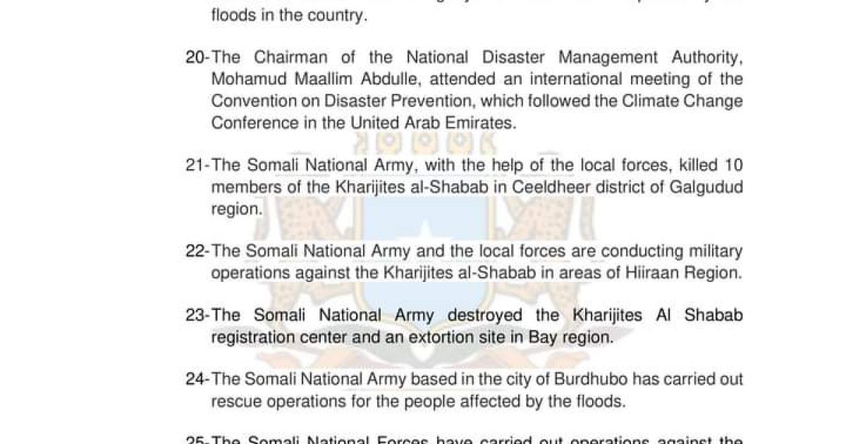 26- The Somali National Army and the local army have carried out operations to chase the Kharijites Al Shabab in the east of Galgaduud