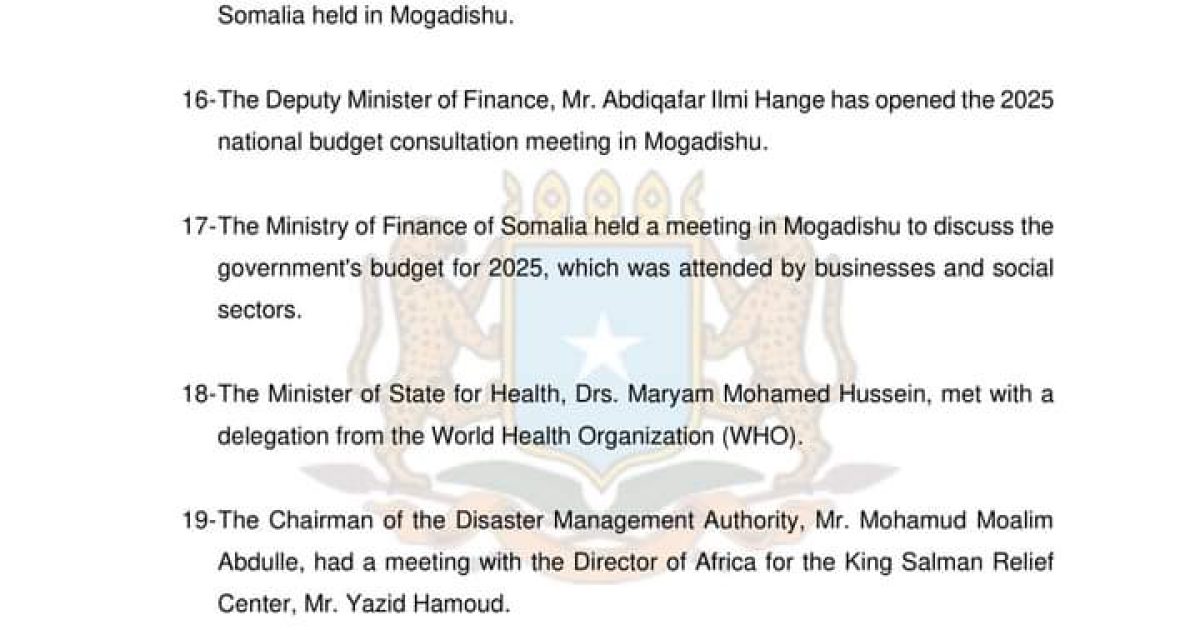 17-The Ministry of Finance of Somalia held a meeting in Mogadishu to discuss the government’s budget for 2025, which was attended by businesses and social sectors.