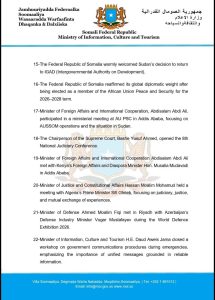 17- Minister of Foreign Affairs and International Cooperation, Abdisalam Abdi Ali, participated in a ministerial meeting at AU PSC in Addis Ababa, focusing on AUSSOM operations and the situation in Sudan.