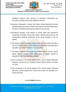 35- Minister of Defense Ahmed Moalim Fiqi signed a military cooperation agreement with Saudi counterpart Prince Khaled bin Salman, enhancing defense and military cooperation.