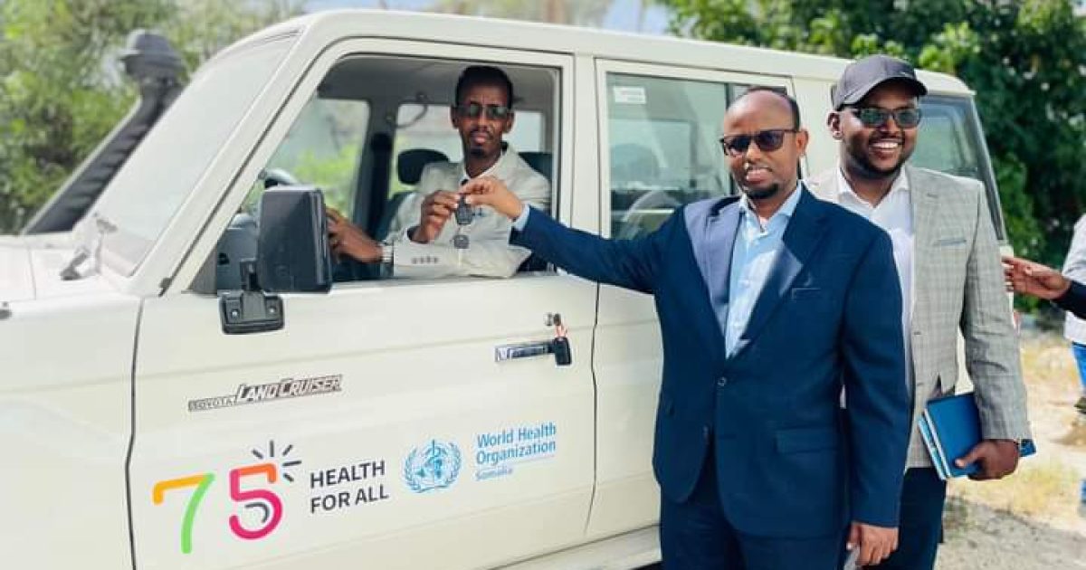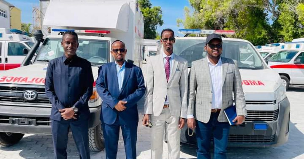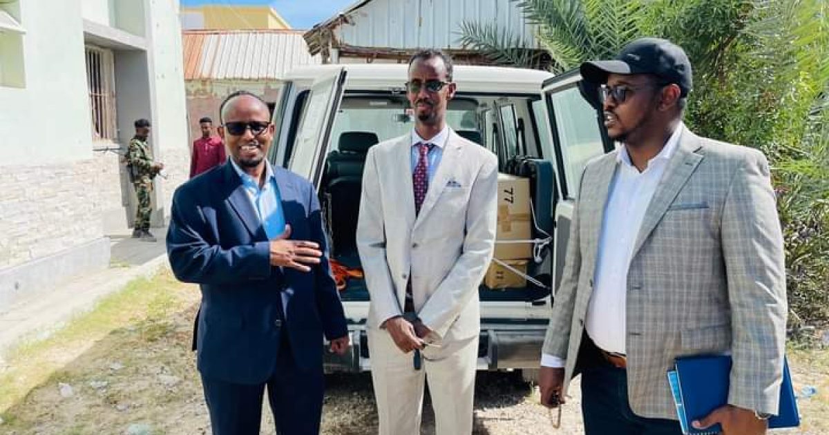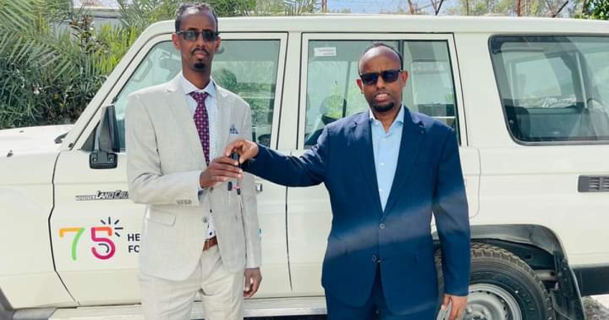 Wasiirka Wasaaradda Caafimaadka iyo daryeelka Bulshada Xukuumadda Federaalka Soomaaliya Dr. Cali Xaaji Aadan ayaa maanta sedax Gaari oo labo ka mid ahi yihiim nooca gargaarka deg degga ah (Ambulance) halka kan sadexaadna uu yahay nooca Hartop-ka oo isgaguna loogu talagaley fududeynta adeegyada Caafimaadka ku wareejiyey Wasiirka Caafimaadka Dowlad goboleed Galmudug.