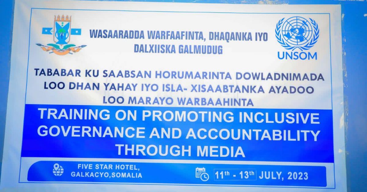 Tababarkaan oo ay soo agaasintay Wasaaradda Warfaafinta Galmudug, isla markaana ah mid lagu baran doono muddada sadaxda maalinn ah ee uu socda horumarinra dowladnimada iyo isla xisaabtanka, iyadoo loo marayo Warbaahinta ayaa waxaa maanta Wasiirka Wasaaradda Warfaafinta Galmudug uu uga furay Gaalkacyo ilaa 25 saxafi oo ka mid ah xubnaha ururka suxufiyiinta Gobalka Mudug ee Galmudug.