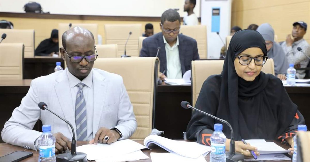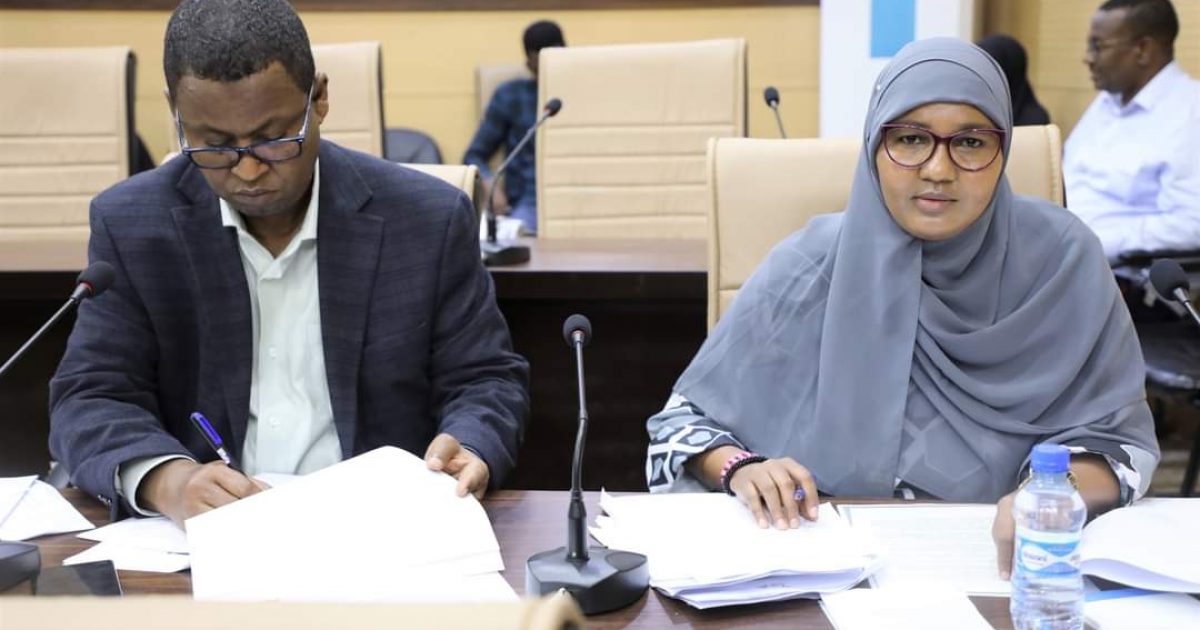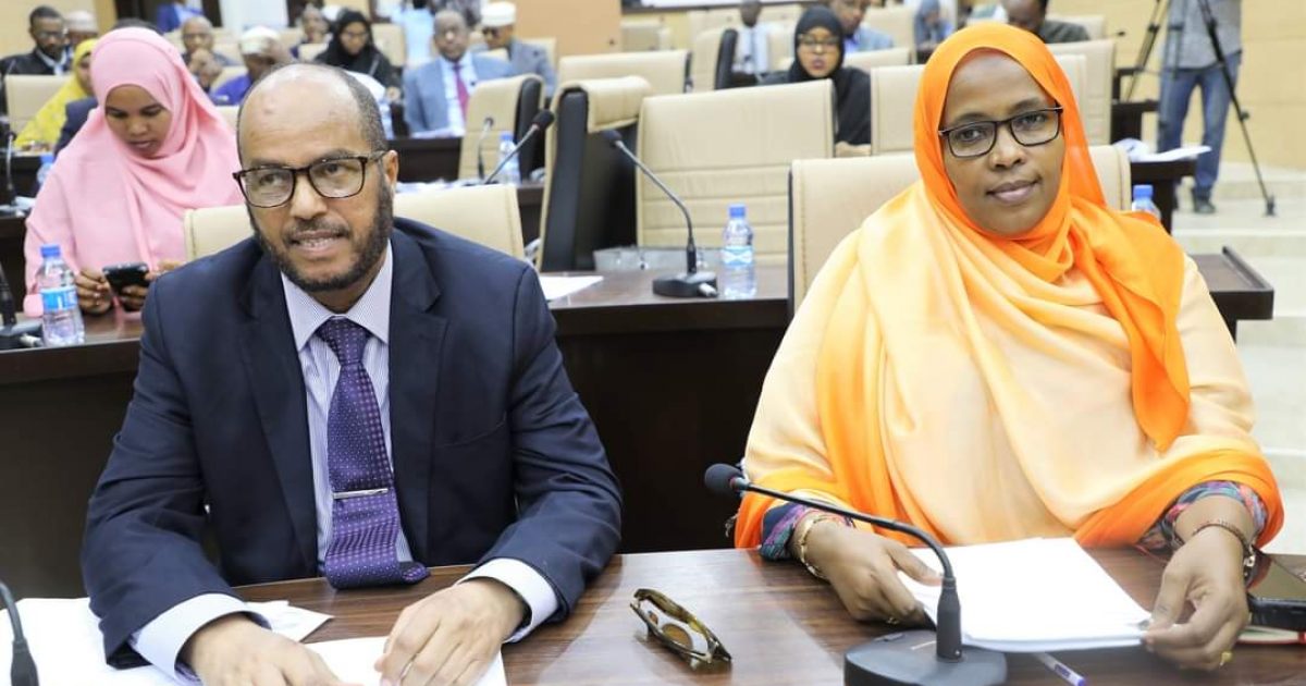 Guddoomiye ku xigeenka koowaad ee Aqalka Sare, Mudane Cali Shacbaan Ibraahim oo uu wehliyay Guddoomiye ku xigeenka labaad, Mudane Cabdullaahi Cali Xersi (Timacadde), ayaa maanta shir guddoomiyay kalfadhiga labaad kulankiis 16-aad.