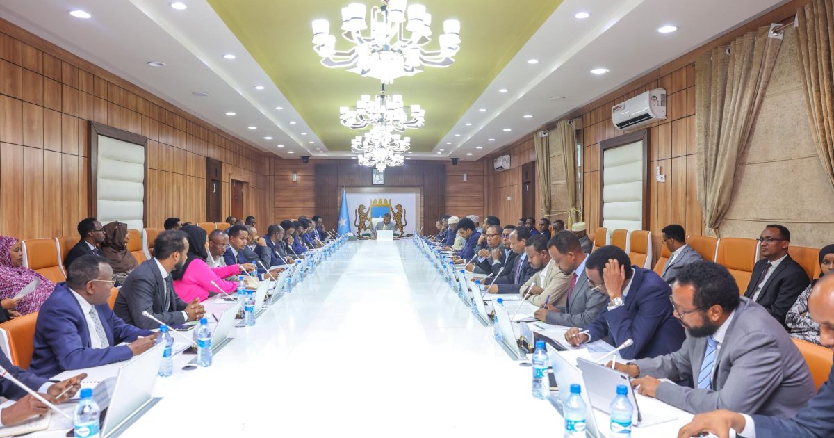 Kulanka Golaha Wasiirrada oo uu guddoominayey Ra’iisul Wasaaraha Xukuumadda Jamhuuriyadda Federaalka Soomaaliya Mudane Xamsa Cabdi Barre, ayaa lagu ansixiyey Xeer-Nidaamiyaha Dhijitaalka Nidaamka Maareynta Maaliyadda, iyo Xisaab-xirka sanadeedkii 2024.