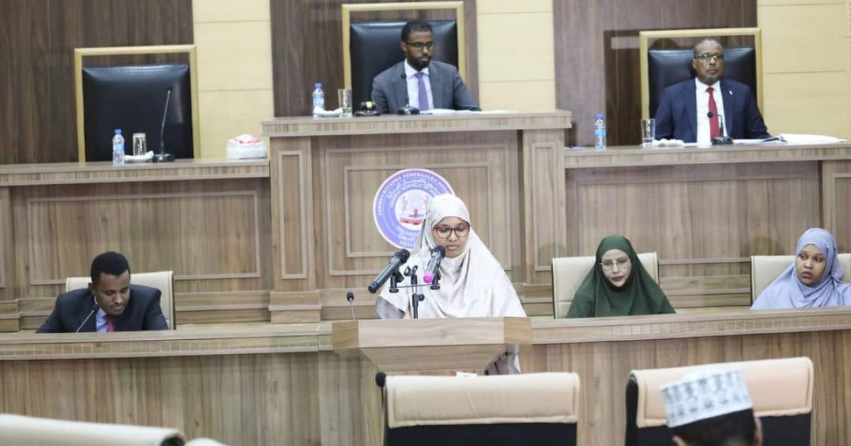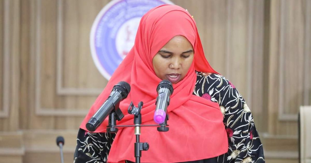 Guddoomiye ku-xigeenka koowaad ee Aqalka Sare, Mudane Cali Shacbaan Ibraahim oo uu wehliyay Guddoomiye ku xigeenka labaad, Mudane Cabdullaahi Cali Xersi (Timacadde), ayaa maanta shir guddoomiyay kalfadhiga labaad kulankiis 20-aad.