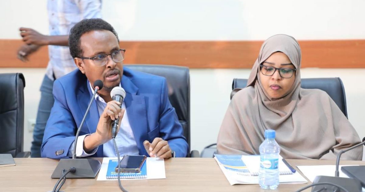 Guddoomiyaha Guddiga Khayraadka Qaranka Aqalka Sare Senator Cismaan Maxamuud Maxamed (Dufle oo kulanka shir guddoomiyay ayaa wasiirka iyo xubnaha la socday uga mahad celiyay sida togan oo ay uga warbixiyeen xogtii laga waydiiyay howlaha Wasaaradda Waxbarashada.