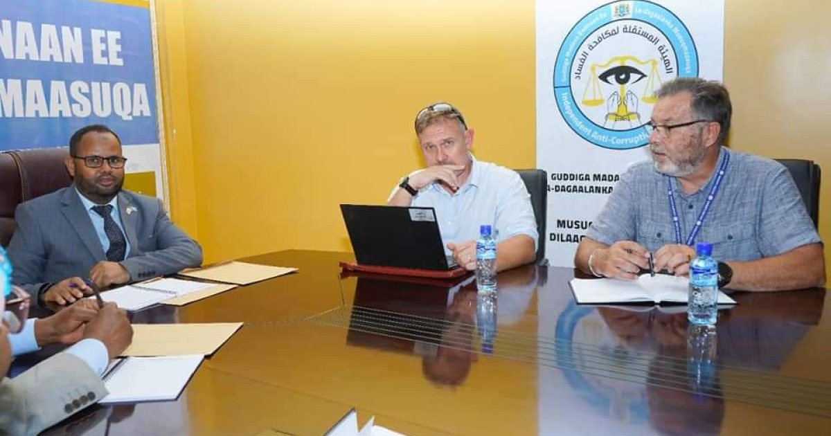 Mas’uuliyiin ka socotay Xafiiska Qaramada Midoobay ee UNODC oo uu hoggaaminayo Madaxa Xafiiska UNODC ee Soomaaliya, Mr. Reginald Pitts iyo Lataliyaha Gaarka ah ee La-dagaallanka Musuqmaasuqa ee UNODC Mr. David Robinson ayaa maanta booqasho ku yimid xafiiska Guddiga Madaxa Bannaan ee La-dagaallanka Musuqmaasuqa Soomaaliya .
