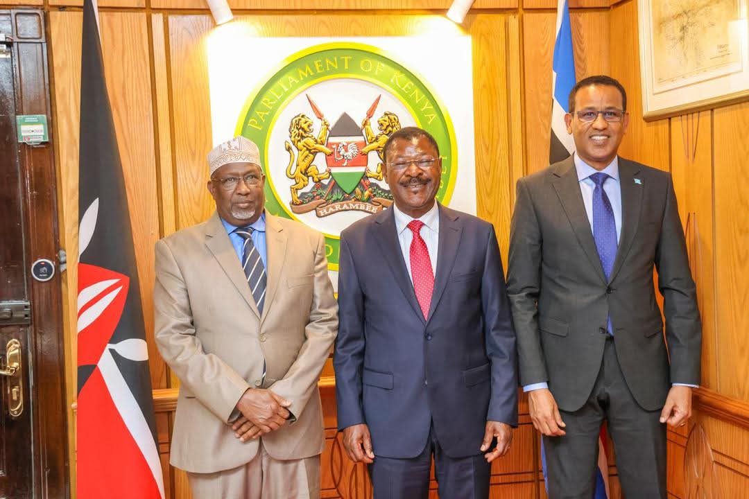 Guddoomiyaha Golaha Shacabka ee Baarlamaanka Jamhuuriyadda Federaalka Soomaaliya, Mudane Sheekh Aadan Maxamed Nuur (Madoobe), oo ku sugan magaalada Nairobi, Caasimadda Kenya, ayaa kulan la qaatay dhigiisa dalka Kenya, Moses M. Wetang’ula.