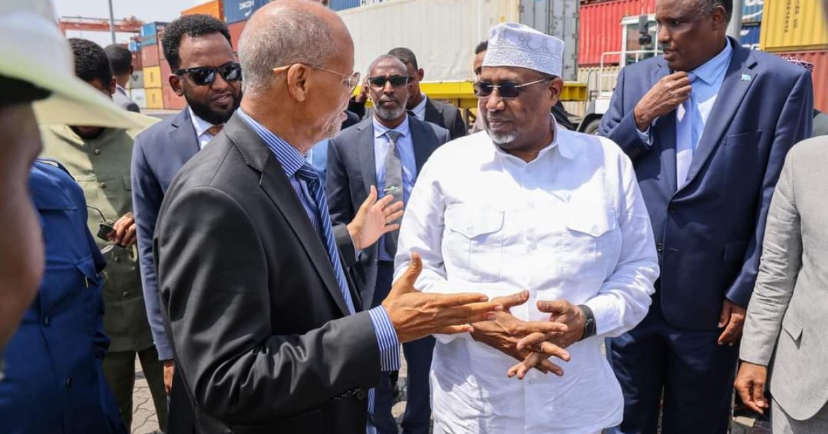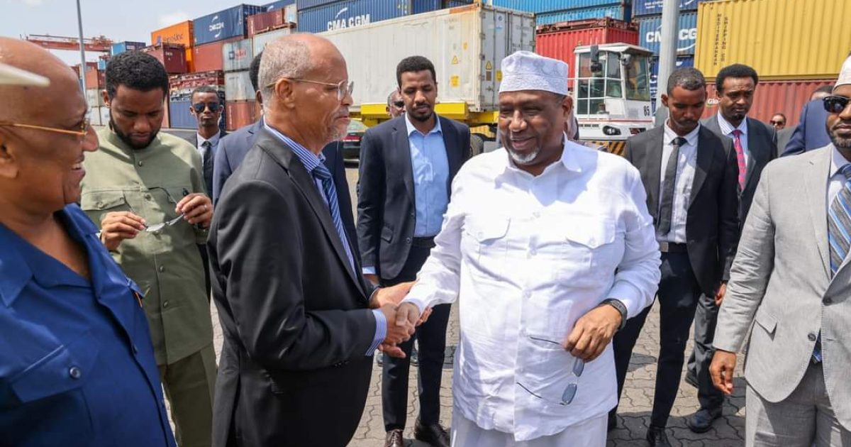 Guddoomiyaha Golaha Shacabka Baarlamaanka Jamhuuriyadda Federaalka Soomaaliya Mudane Sheekh Aadan Maxamed Nuur (Madoobe) oo uu wehliyo Guddoomiyaha Baarlamaanka Jamhuuriyadda Jabuuti Mudane Dileita Mohamed Dileita ayaa maanta booqasho ku tagay Dekadda iyo Goobaha Canshuuraha ka Caagan.