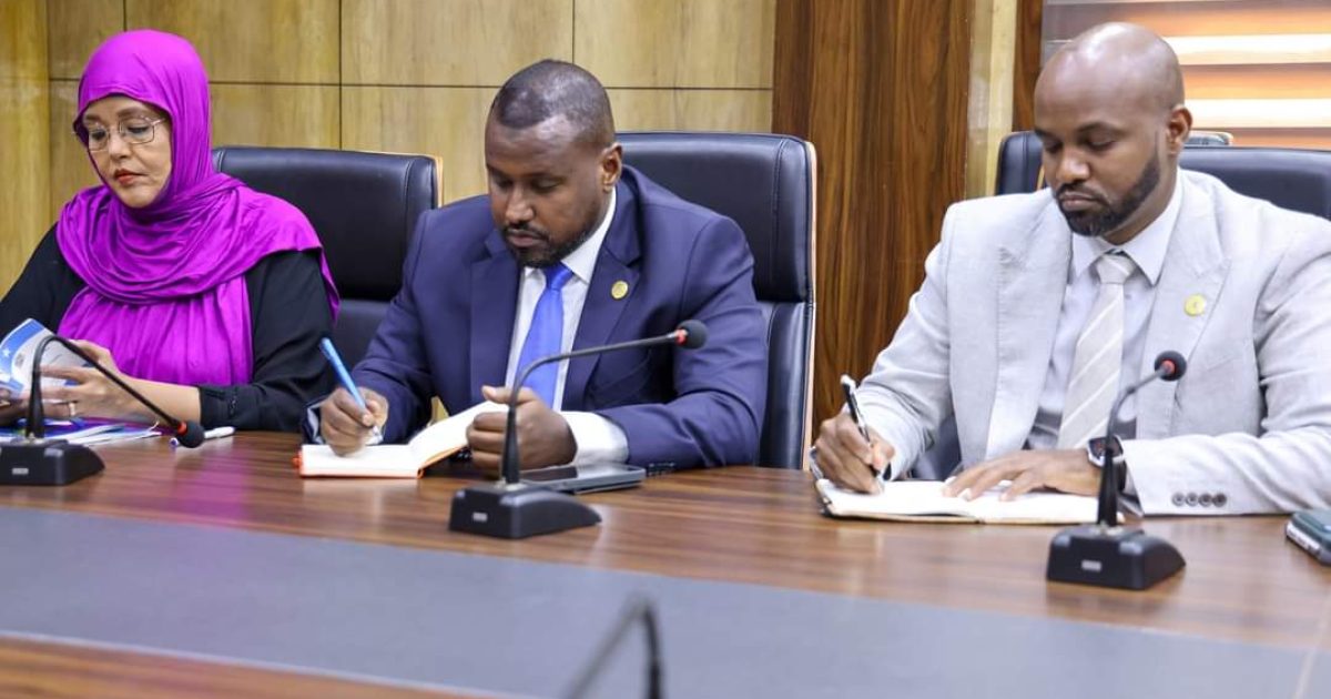 Guddoomiyaha Golaha Shacabka Baarlamaanka Jamhuuriyadda Federaalka Soomaaliya Mudane Sheekh Aadan Maxamed Nuur (Madoobe) oo ay wehliyaan labadiisa ku-xigeen, ayaa maanta xafiiskiisa kulan kula qaatay Guddoomiyaha Aqalka sare Mudane Cabdi Xaashi Cabdullahi iyo Ku-xigeenkiisa Koowaad Cali Shacbaan Ibraahim.