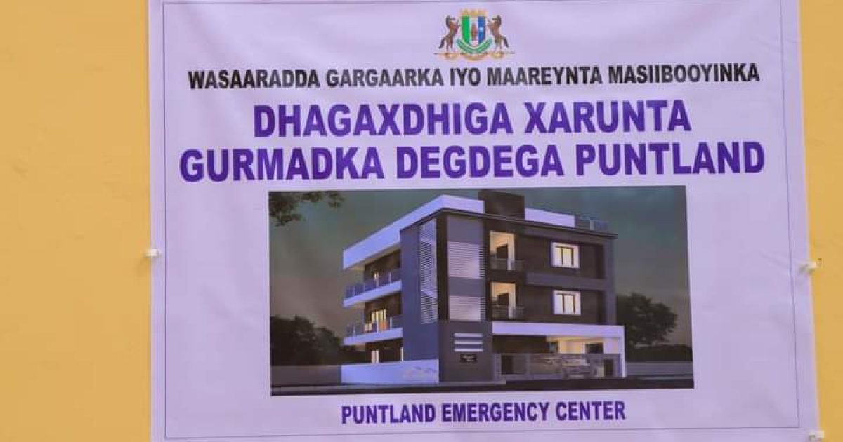 Guddoomiyaha Hay’adda Maareynta Musiibooyinka Qaranka ee SoDMA Maxamuud Macallin Cabdulle oo ay wehliyaan Wasiir ka Gar-gaarka Puntland Cabdullaahi Cabdi Xirsi iyo Wasiirka Duulista hawada iyo Garoomada Puntland Ilyaas Cusmaan Lugatoor ayaa si wada jir ah u dhagax dhigay Xarunta Gurmadka deg degga ee Dowlad Goboleedka Puntland ee Soomaaliya.