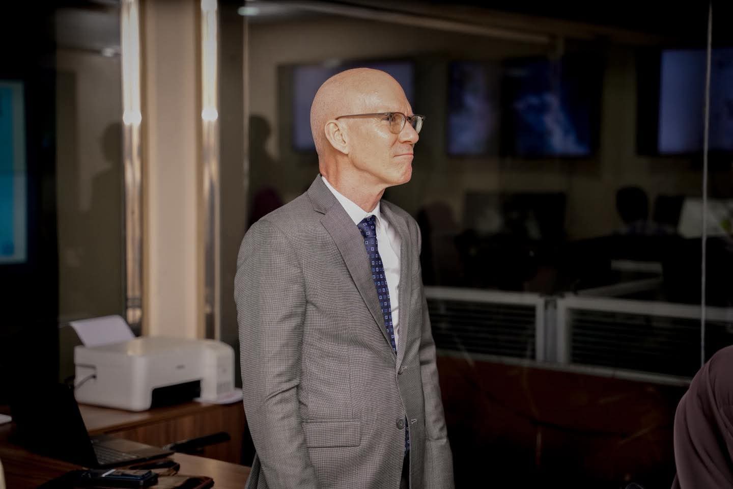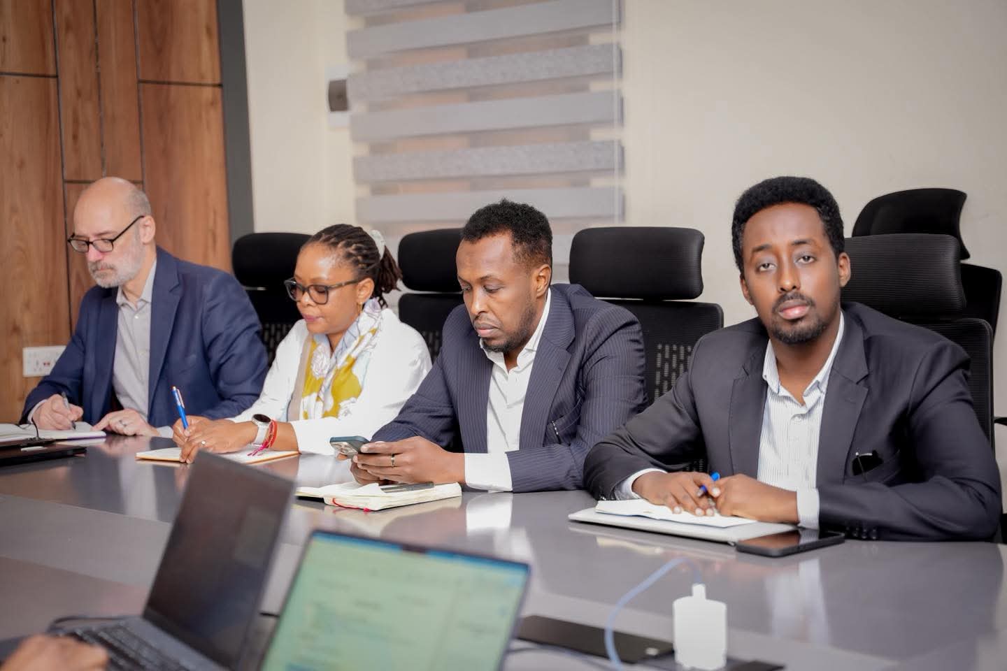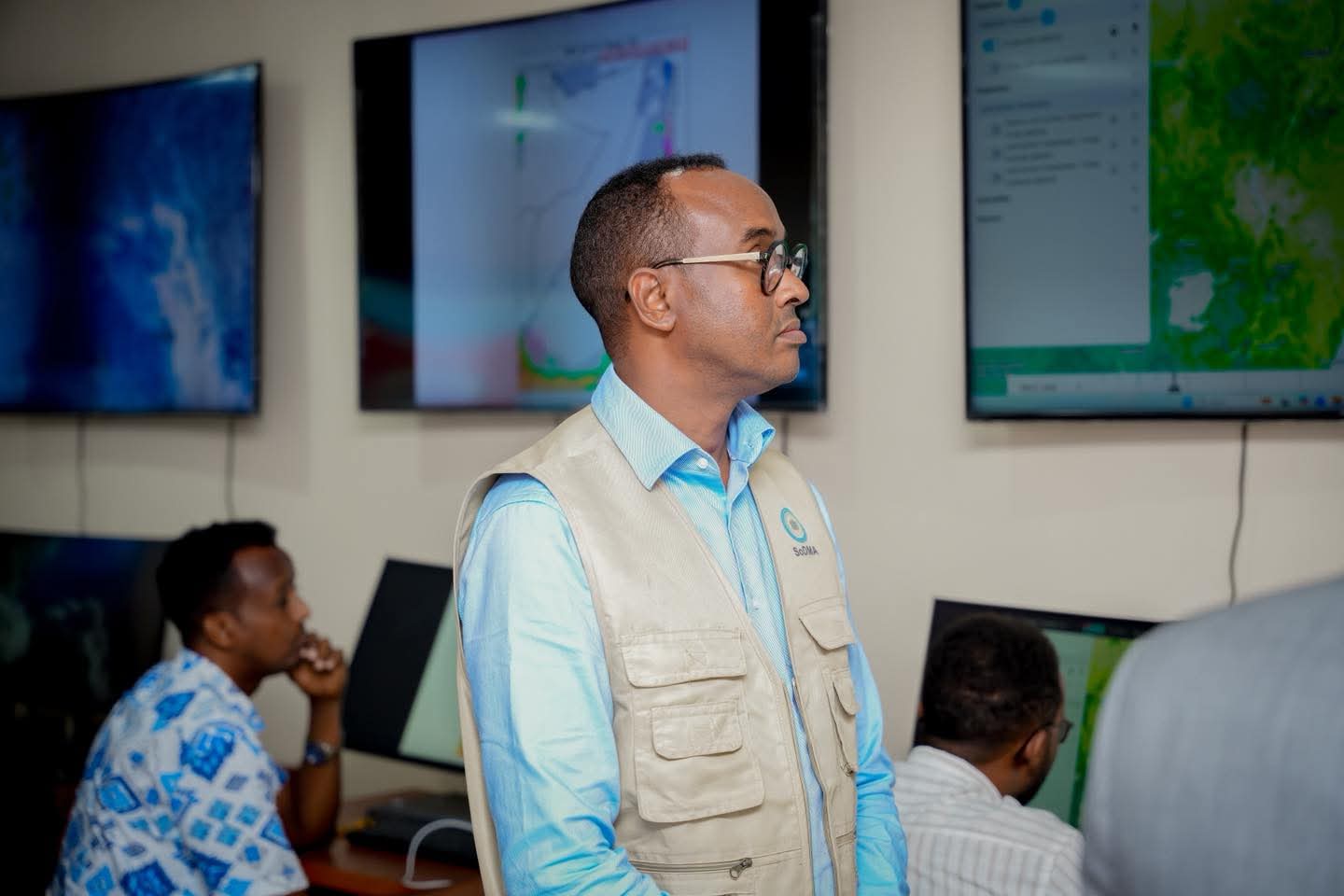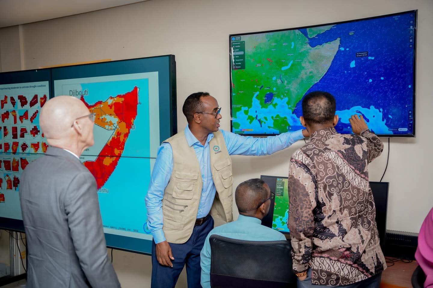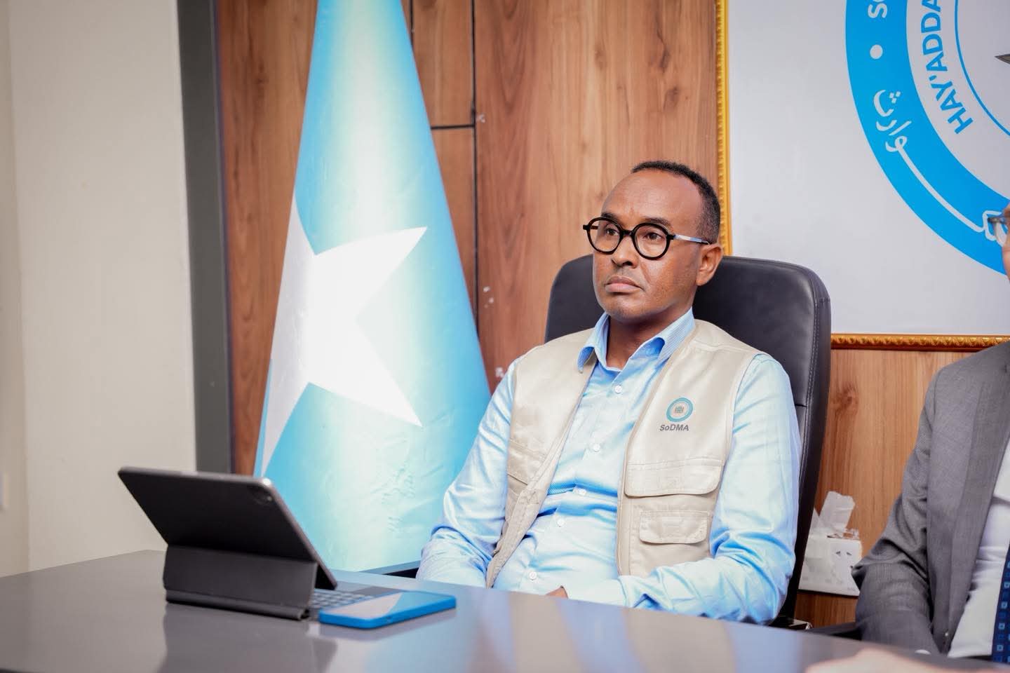 Guddoomiyaha Hay’adda Maareynta Musiibooyinka Qaranka SoDMA, Mudane Maxamuud Macalin Cabdulle, ayaa xarunta hay’adda ku qaabilay Wakiilka Xoghayaha Guud ee Qaramada Midoobay u qaabilsan Soomaaliya James Swan iyo Ku-xigeenka Ergayga Gaarka ah ee Xoghayaha Guud ee Qaramada Midoobay, ahna Isku-duwaha Howlaha Qaramada Midoobay ee Soomaaliya ee Horumarinta iyo Arrimaha Beni’aadannimada, Mr. George Conway.