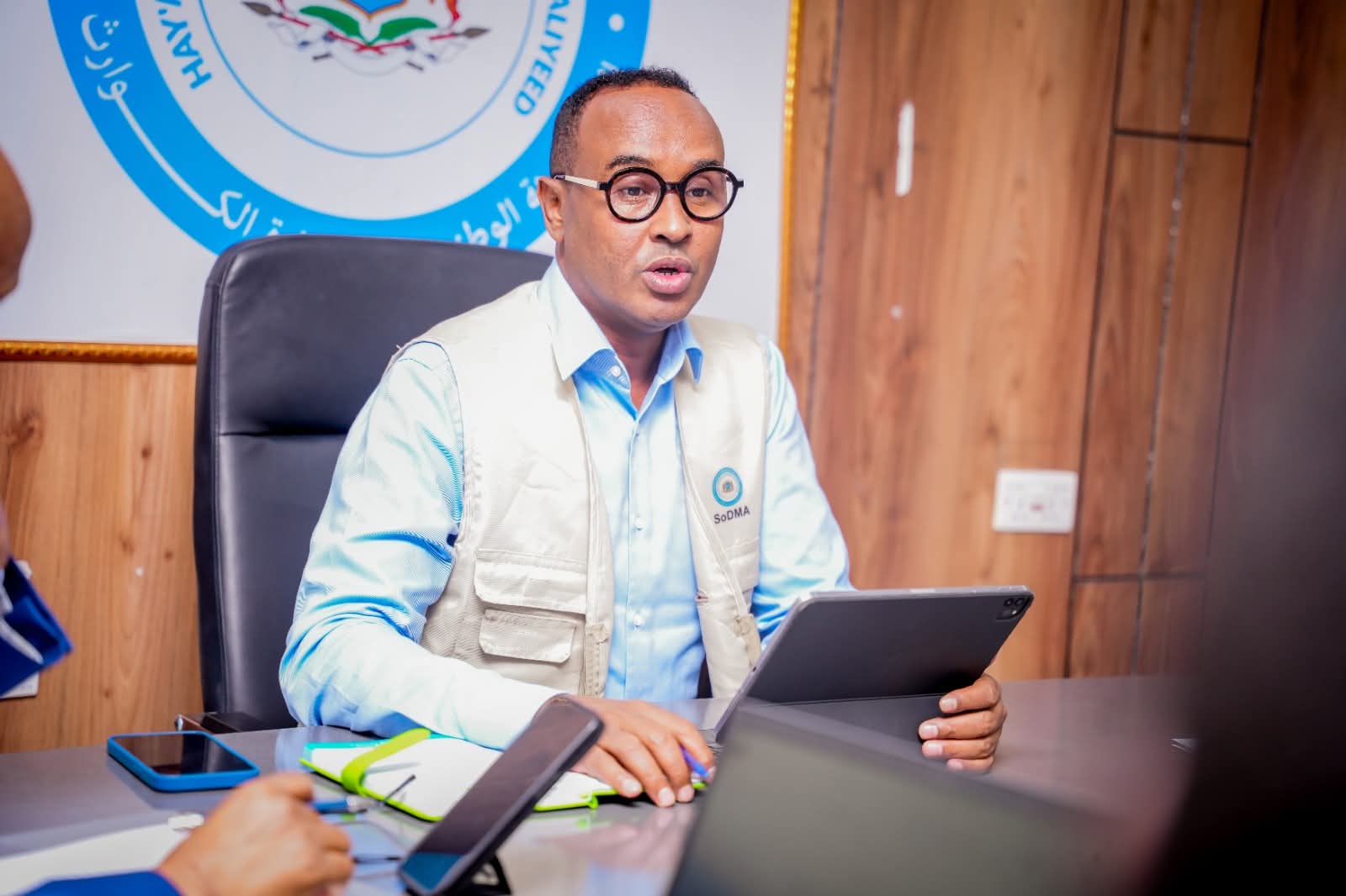 Guddoomiyaha Hay’adda Maareynta Masiibooyinka Qaranka Soomaaliyeed (SoDMA), Mudane Maxamuud Macalin Cabdulle, ayaa xarunta hay’adda ku qaabbilay Agaasimaha cusub ee Hay’adda Cuntada Adduunka (WFP) ee Soomaaliya, Mudane Hameed Nuur.