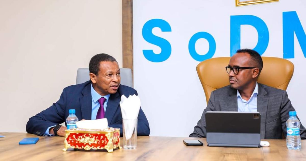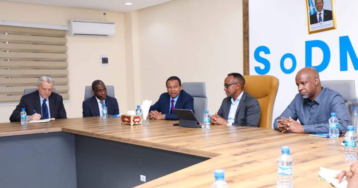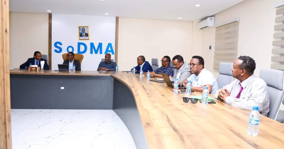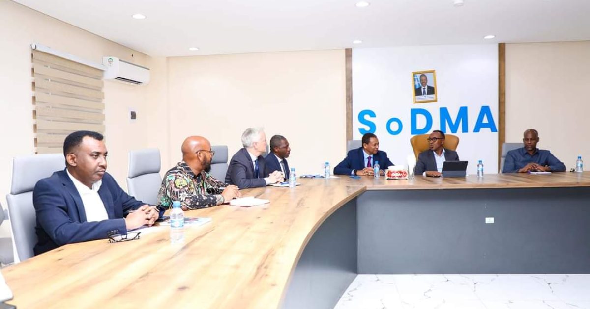 Guddoomiyaha Hay’adda Maareynta Musiibooyinka Mudane. Maxamuuud Macallin Cabdulle oo uu wehliyo Guddoomiye ku xigeenkiisa, Dr. Axmed Cabdi Aadan, ayaa xarunta dhexe ee SoDMA ku qaabilay wakiilka Barnaamijka Cunnada Adduunka ee Soomaaliya Mudane El-Khidir Daloum.