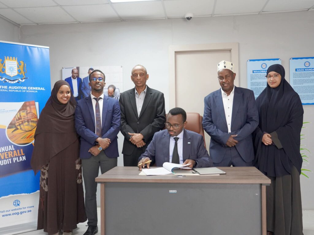 Hantidhowraha Guud ee Jamhuuriyadda Federaalka Soomaaliya ayaa maanta saxiixay Qorshaha Guud ee Baarista sannadka 2026, (Annual Overall Audit Plan – 2026). Qorshahan sanadlaha ah ayaa hagaya dhammaan hawlaha baarista ee Xafiiska Hantidhowrka Guud, inta lagu jiro sannadkan, wuxuuna si cad u qeexayaa habka fulinta baarista hantidhowr ee hay’adaha dowladda, jihada guud, mudnaanta, iyo baaxadda baarista, mashaariicda, iyo qaar ka mid ah nidaamyada tiknoolojiyadda ee ay dowladdu adeegsato.