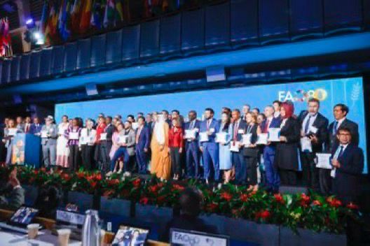 Abaalmarinta waxaa guddoonsiiyay Agaasimaha Guud ee Hay’adda Cunnada iyo Beeraha ee Qaramada Midoobay (FAO), iyadoo magaca Soomaaliya uu ku guddoomay Wasiirka Wasaaradda Beeraha iyo Waraabka Qaranka, kaasoo matalayay SoDMA.