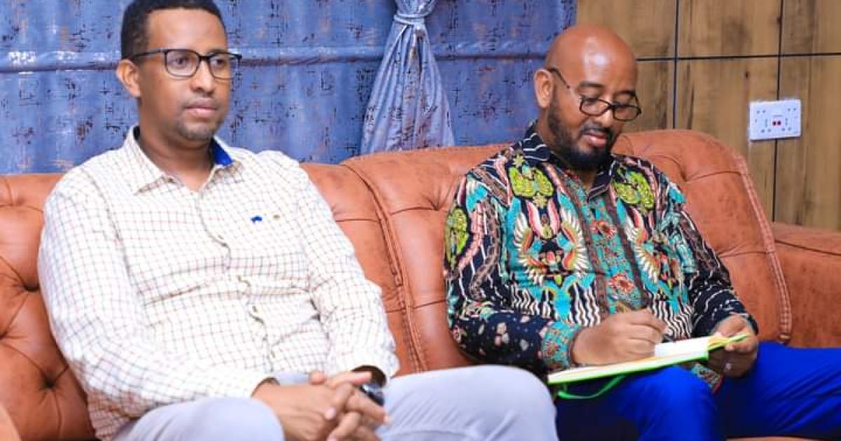 Guddoomiyaha Hay’adda Maaraynta Musiibooyinka Qaranka Mudane Maxamuud Macallim Cabdulle oo ay wheliyaan Agaasimaha Waaxda Maareynta Musiibooyinka Mudane Khadar Maxamed Sheekh Nuur iyo La-taliye Sare Maxamed Macallim (Wayaaka) ayaa maanta kulan la yeeshay Madax ka socotay hay’adda Start Network.