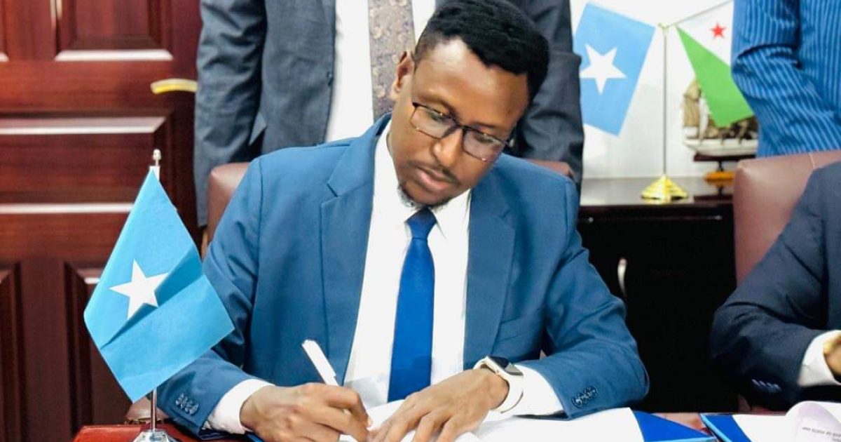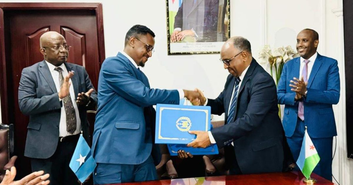 Iskaashigan shaqo ee ay maanta ku kala saxiixdeen magaalada Jabuuti Warbaahinnada Qaranka labada dal, Waxaa dhanka Soomaaliya u saxiixay Agaasimaha Radio Muqdisho Cabdifataax Daahir Jayte, halka uu Jabuuti uu u Saxiixay Agaasimaha Guud ee Raadiyaha iyo Telefishinka Jabuuti Aadan Cabdi Jaamac.