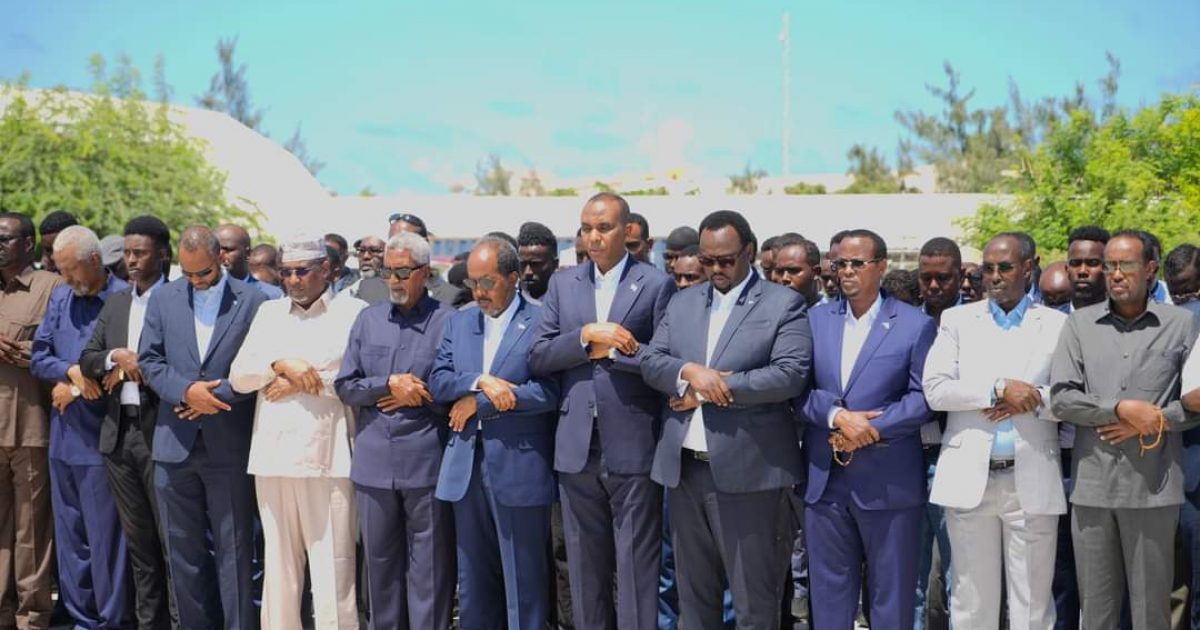 Madaxweynaha Jamhuuriyadda Federaalka Soomaaliya Mudane Xasan Sheekh Maxamuud, ayaa Salaadda Janaasada ku tukaday Alle ha u naxariistee Marxuum Cismaan Maxamed Jeelle oo ka mid ahaa Xubinihii Golaha Sare ee Dowladdii dhexe ee Soomaaliya.